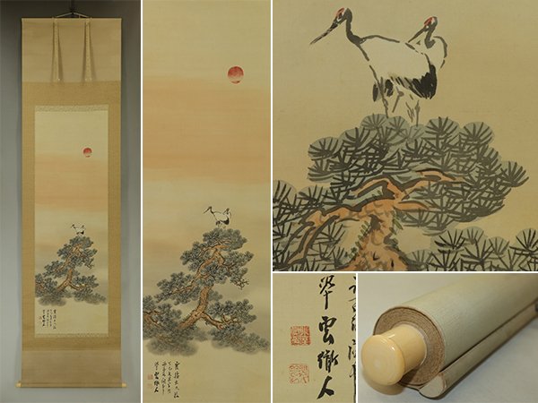 | №2502044【模写】小室翠雲【松上白鶴図】◆絹本◆共箱◆掛軸 | |