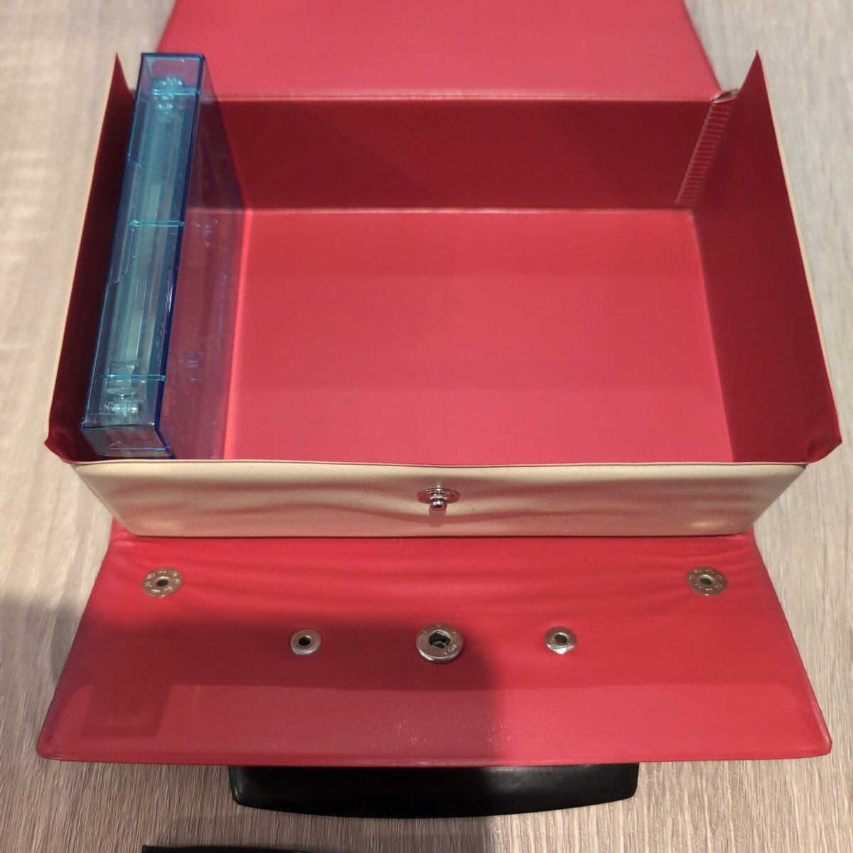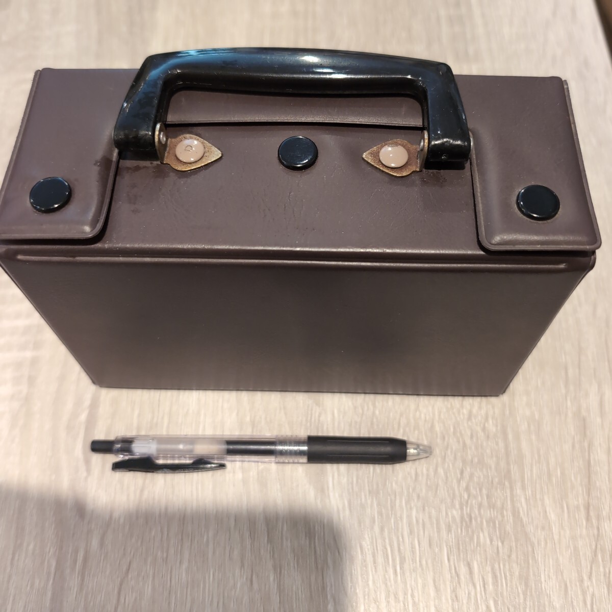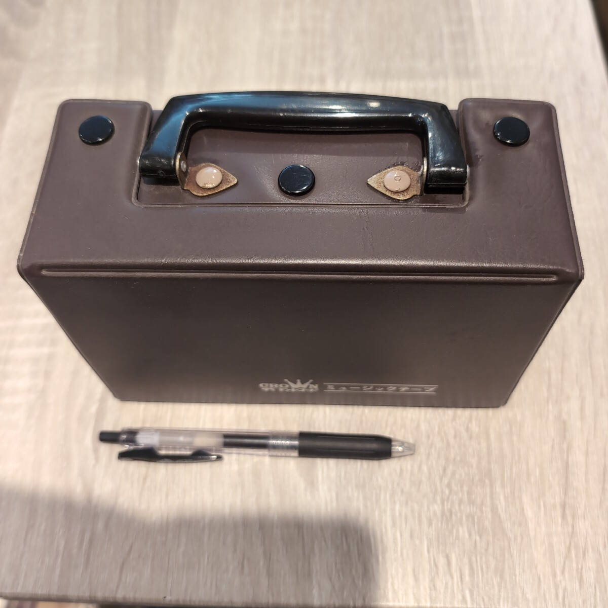 カセットテープが9本入るキャリーケースです。私感ですが経年の割には綺麗だと思います。アルコールスプレーにて除菌済。