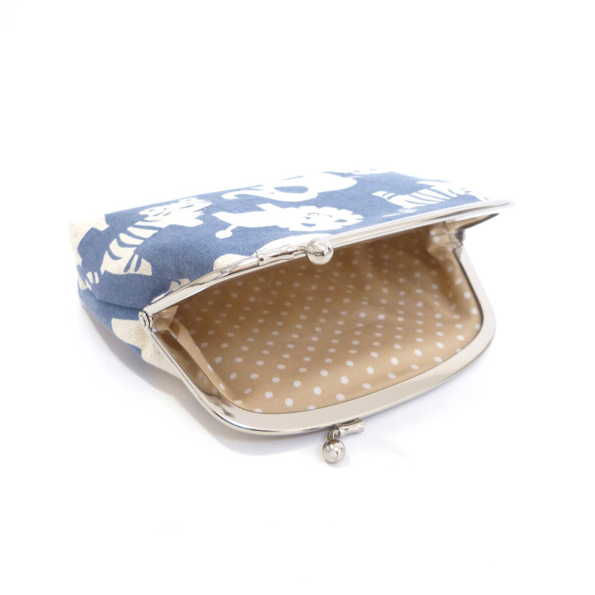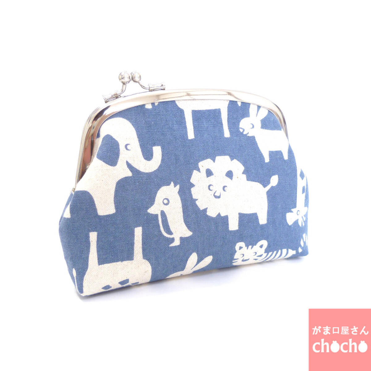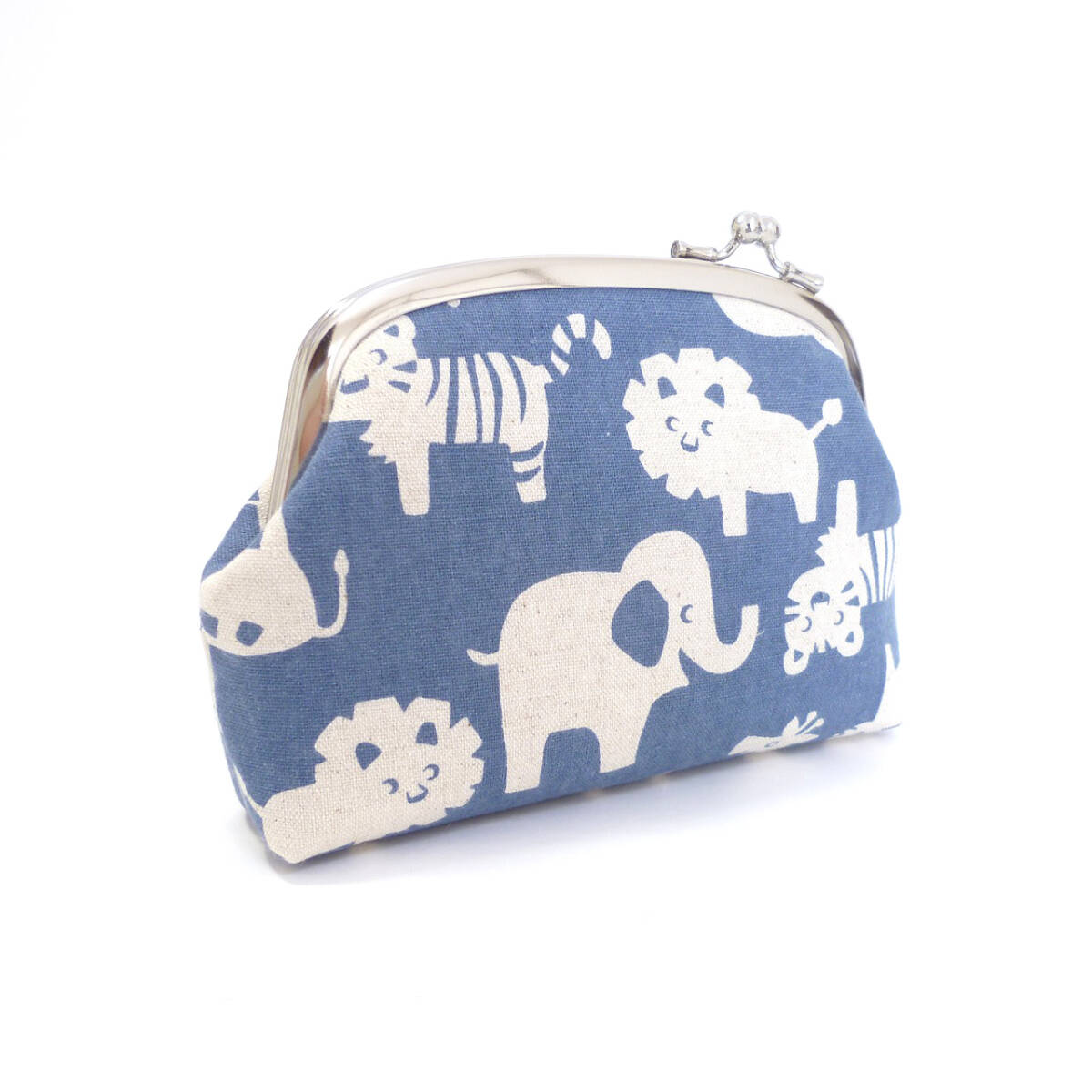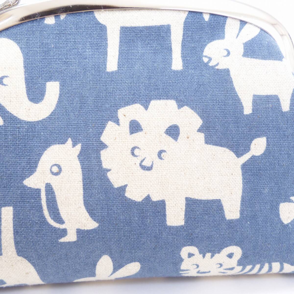 がま口ポーチ 動物たち アニマル 青 化粧ポーチ ハンドメイド G442
