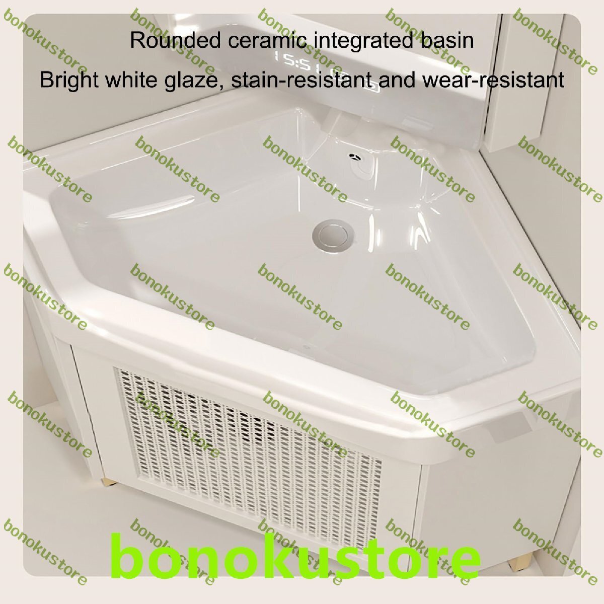 ??モダンな洗面化粧台シンクは、シンプルでエレガントなデザインと耐久性のある構造が特徴です。これらの細くてコンパクトな洗面化粧台は、小~中規模のバスルーム、ハーフバス、狭いスペースなどに最適です。特徴:- 床置きの三角形のコーナーデザインはスペースを節約し、狭いスペースに最適です。- 多層の無垢材ボードで作られたこのキャビネットは、防水性と防錆性を備えています。- 収納キャビネットはミラーキャビネットの後ろにあり、十分な収納スペースを提供します。- 高温焼成の一体型セラミックポットは、耐久性があり、お手入れが簡単です。- オーバーフローポートとその周りの湾曲したデザインにより、排水が妨げられません。仕様:製品名: ユーティリティコーナーバスルーム洗面台コンボ色: ホワイト、ウッドカラーミラーキャビネットサイズ: 70cm/27.6インチバスルームシンクキャビネットサイズ: 38cm/15インチシンク素材: セラミック洗面台キャビネット素材: 無垢材多層ボード機能: 収納、洗浄、防水、照明、曇り止め表面技術: 無塗装パッケージ内容:温水・冷水蛇口 x 1コーナーバスルーム洗面台 x 1