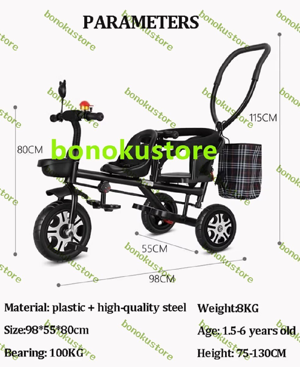 フットレストボード付きのデュアルシートはどちらも双子に適しています。