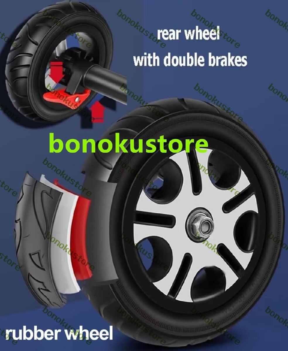 衝撃吸収性と耐摩耗性に優れたチタンホイール、後輪はダブルブレーキ付き。