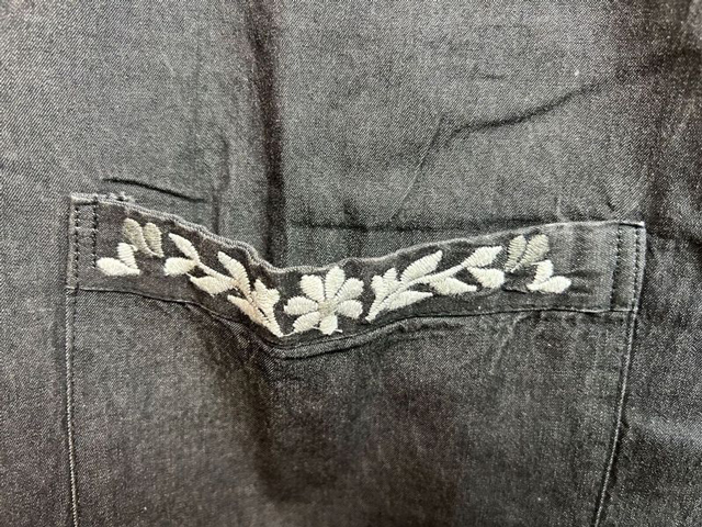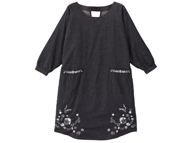 黒 4950円 デニムエプロン 割烹着 花柄刺繍