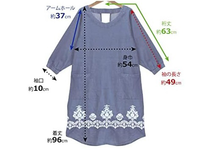 手首まですっぽりと覆ってくれる割烹着タイプなのでお洋服を汚しません。