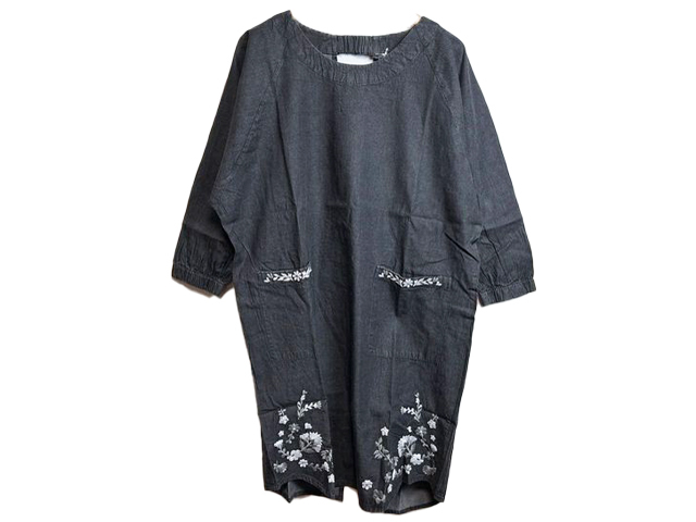 チュニックの様に可愛らしく着られるデニムのエプロンです。
