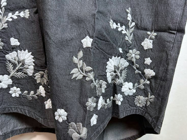 裾には女性らしい花柄の刺繍をあしらいました。