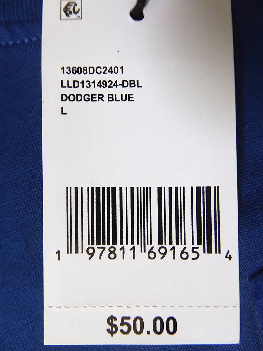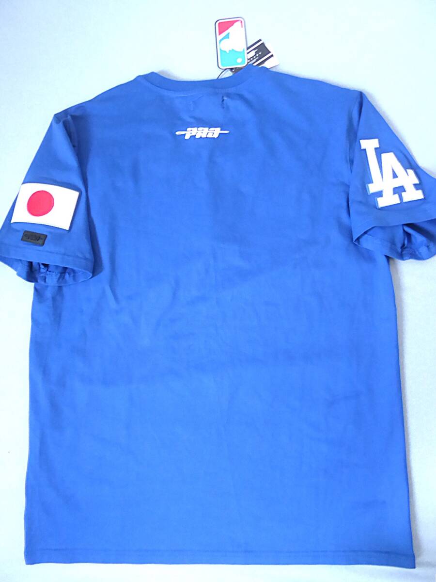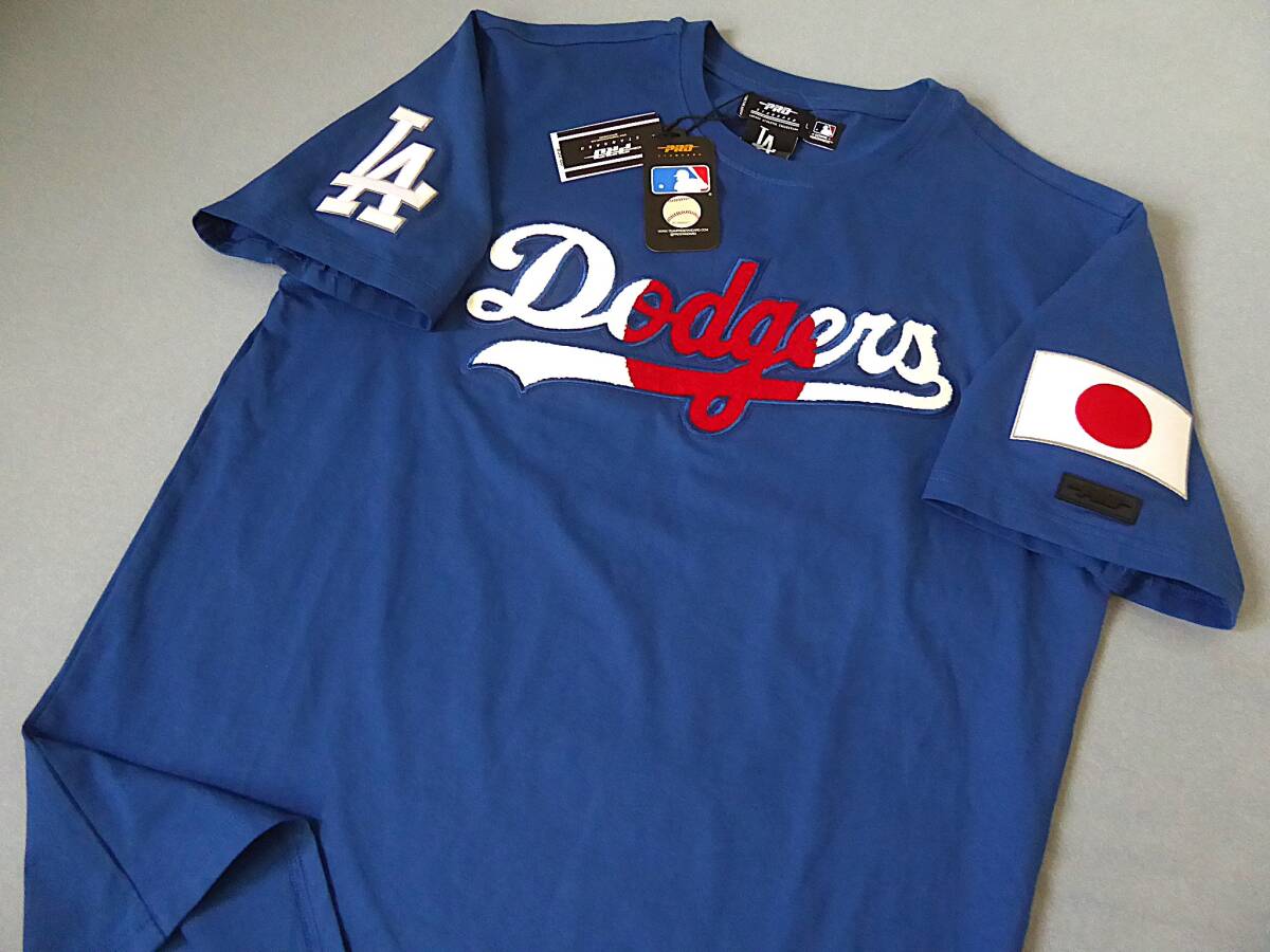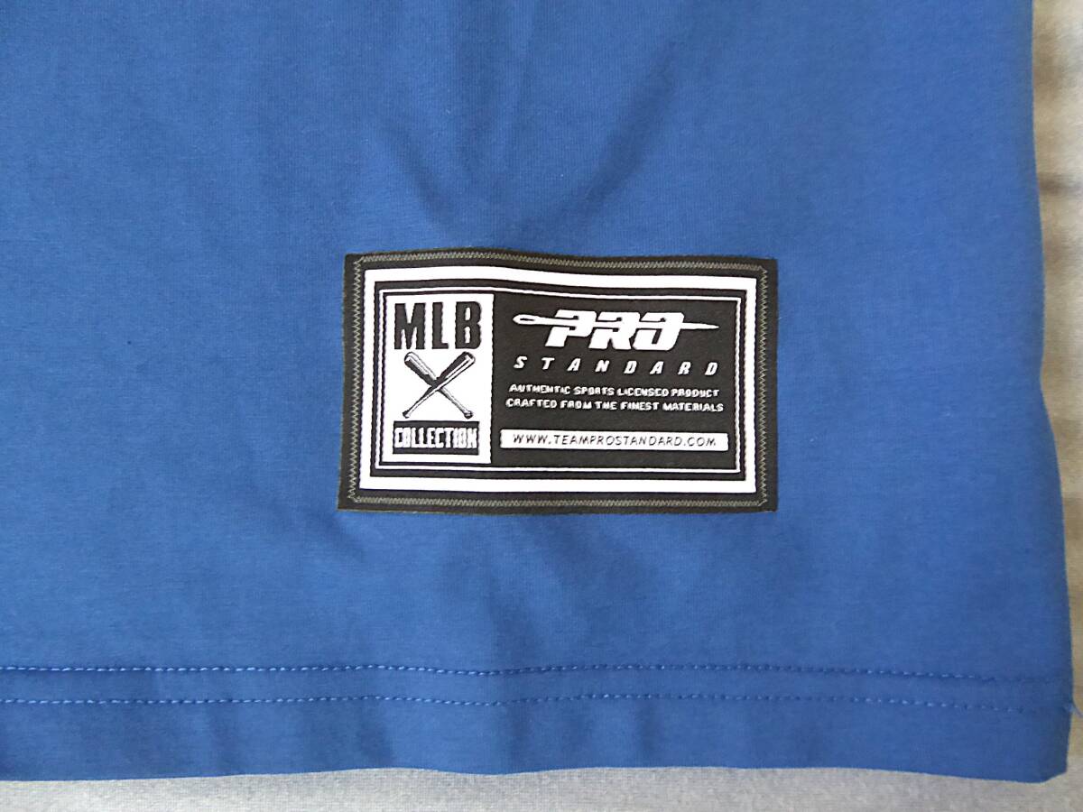 送料無料 MLB ロサンゼルス ドジャース ロゴ刺繍 ストレッチ 半袖 Tシャツ L (USサイズ)大きめ 青