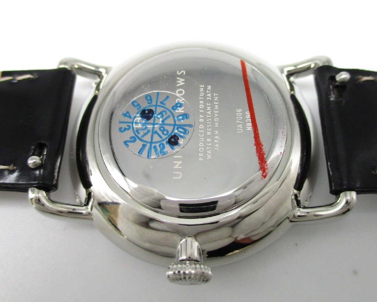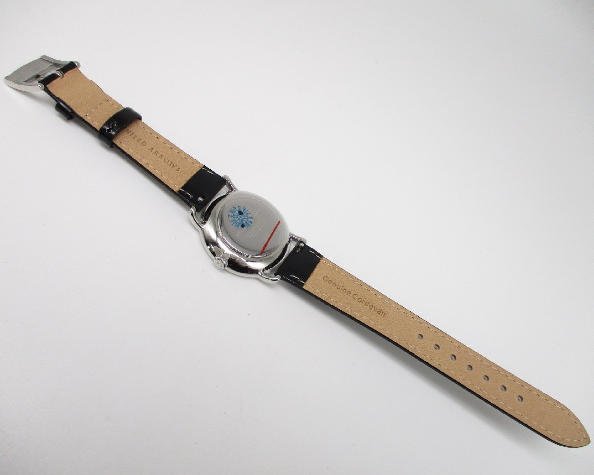 | 商品詳細 UNITED ARROWS ユナイテッドアローズ ラウンドモデル クォーツ・SS・3気圧防水仕様・コードバンレザー(馬革) 【製品番号】UA7006 【およそのサイズ】ケース径:32mm 【状態】未使用品・・・僅かなスレ程度があった場合はご容赦ください。 クォーツ時計の入っている電池はモニター電池扱いでお願いいたします。発送までに止まった場合は電池交換後、発送いたしますが、その後の電池切れの際は、落札者様御自身でメーカーもしくは一般店に電池交換にお出しください。 【付属品】箱・保証書等は無く、時計のみです。 | ||||