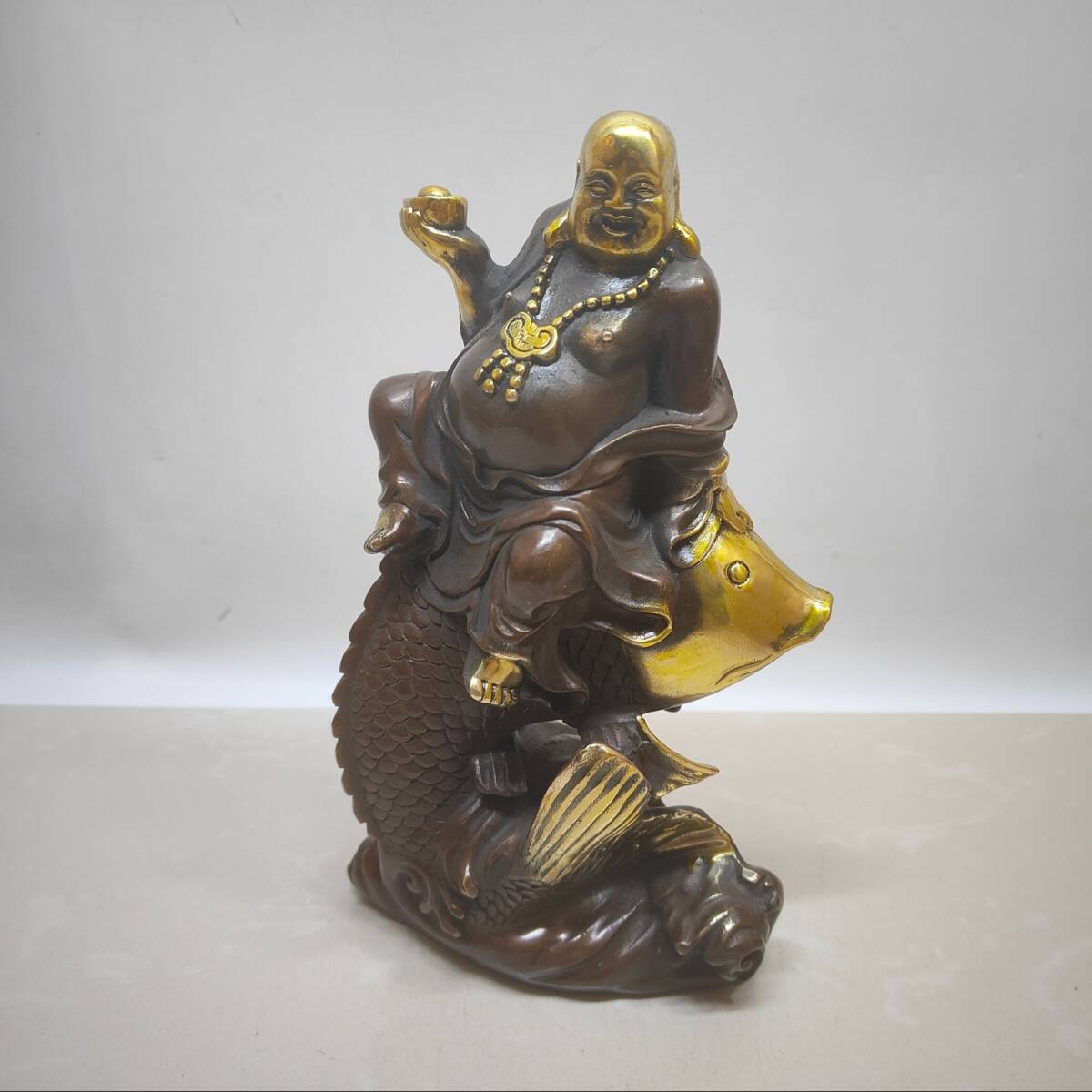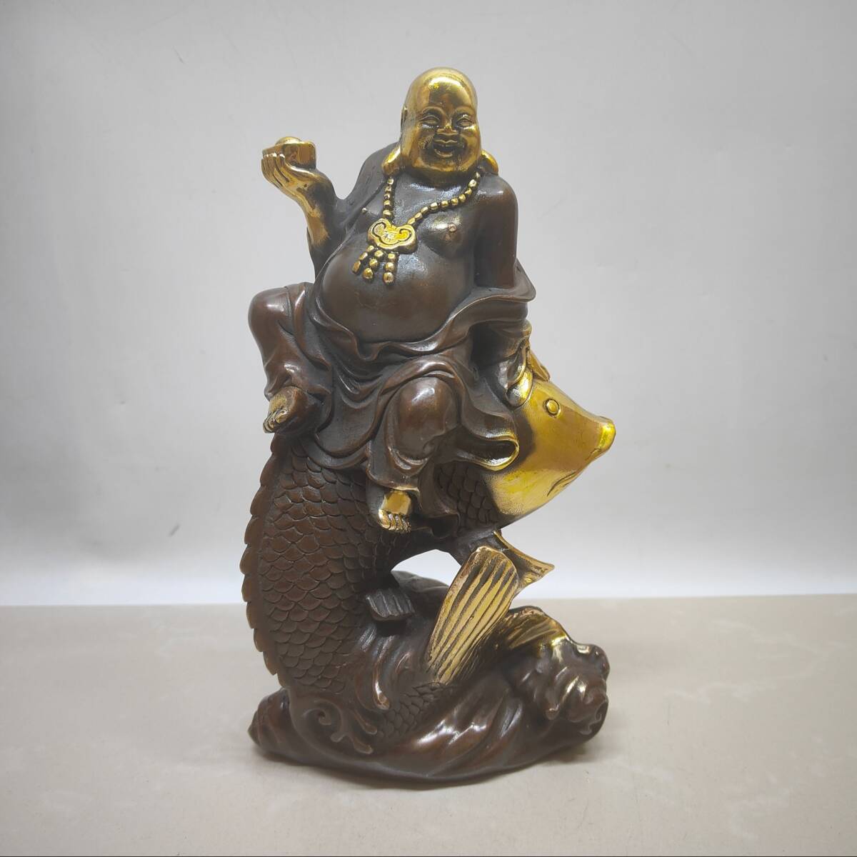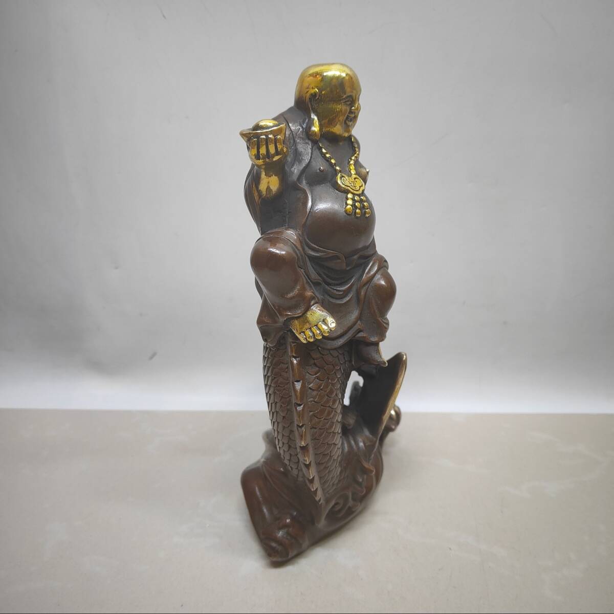 | 【古寶奇蔵】黄銅製・塗金・魚彌勒仏・置物・賞物・中国時代美術 |