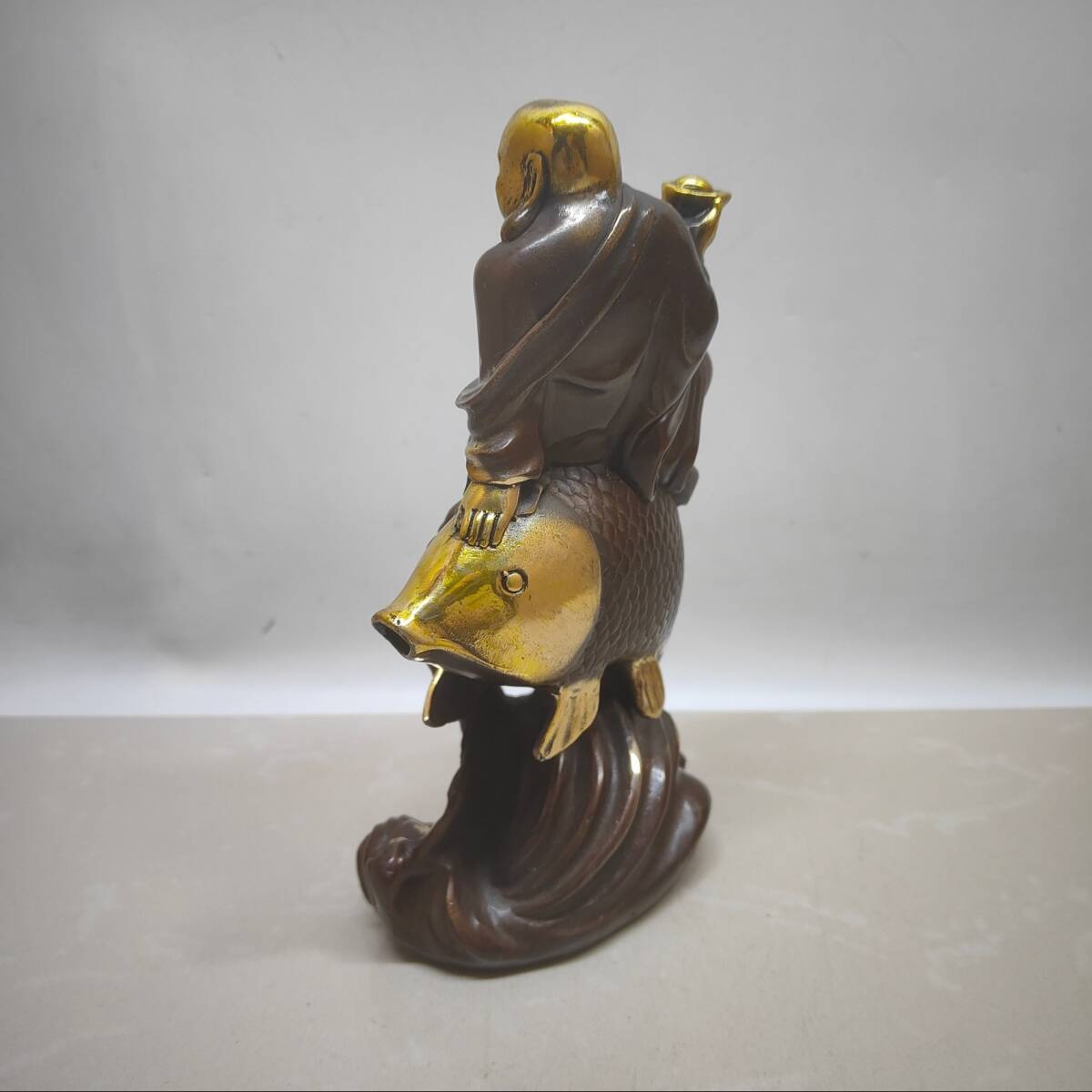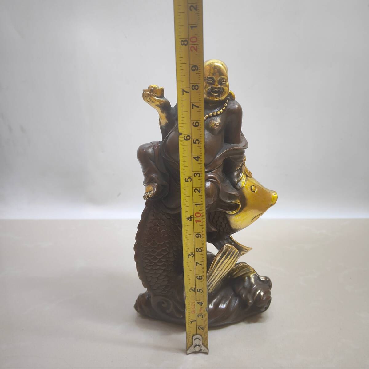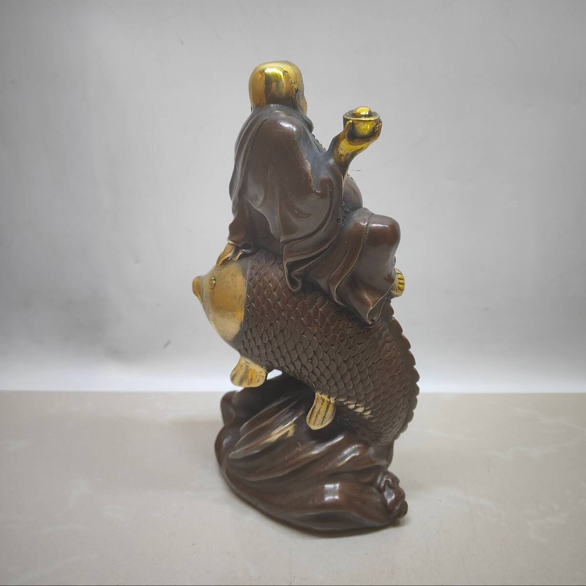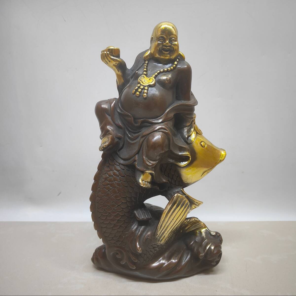 | 【古寶奇蔵】黄銅製・塗金・魚彌勒仏・置物・賞物・中国時代美術 |