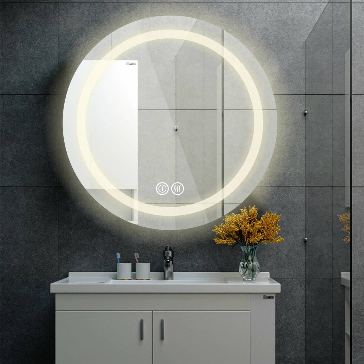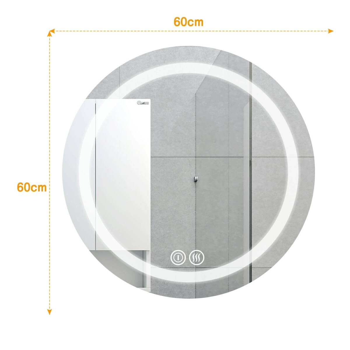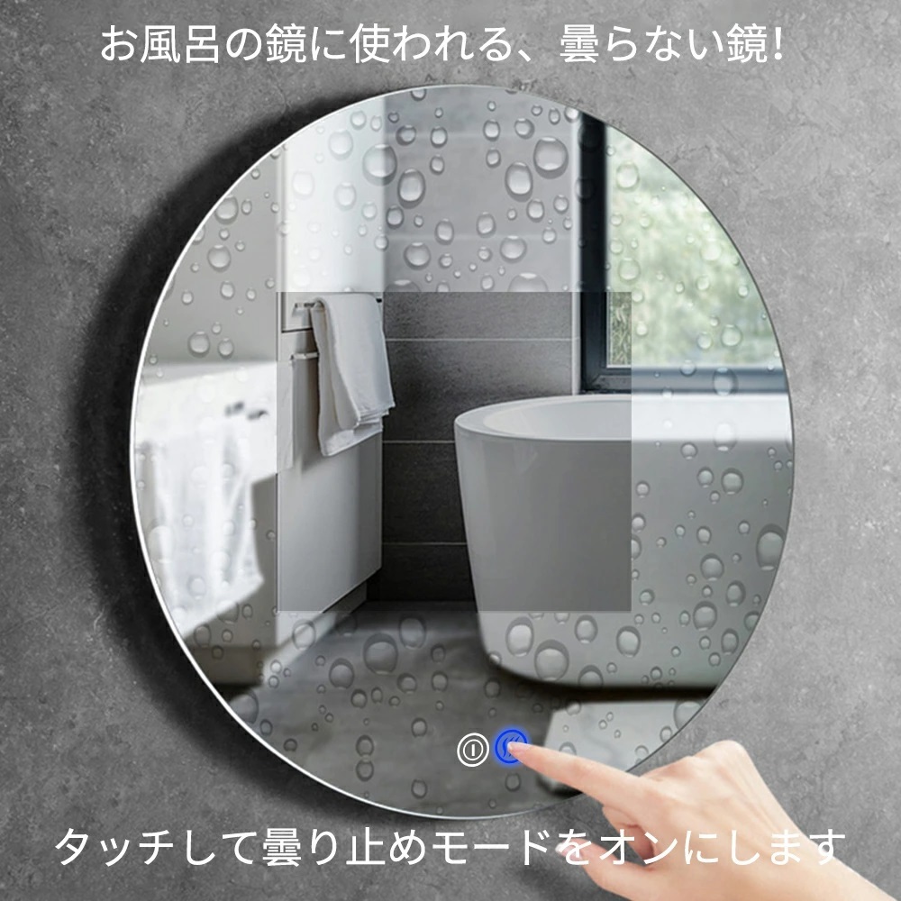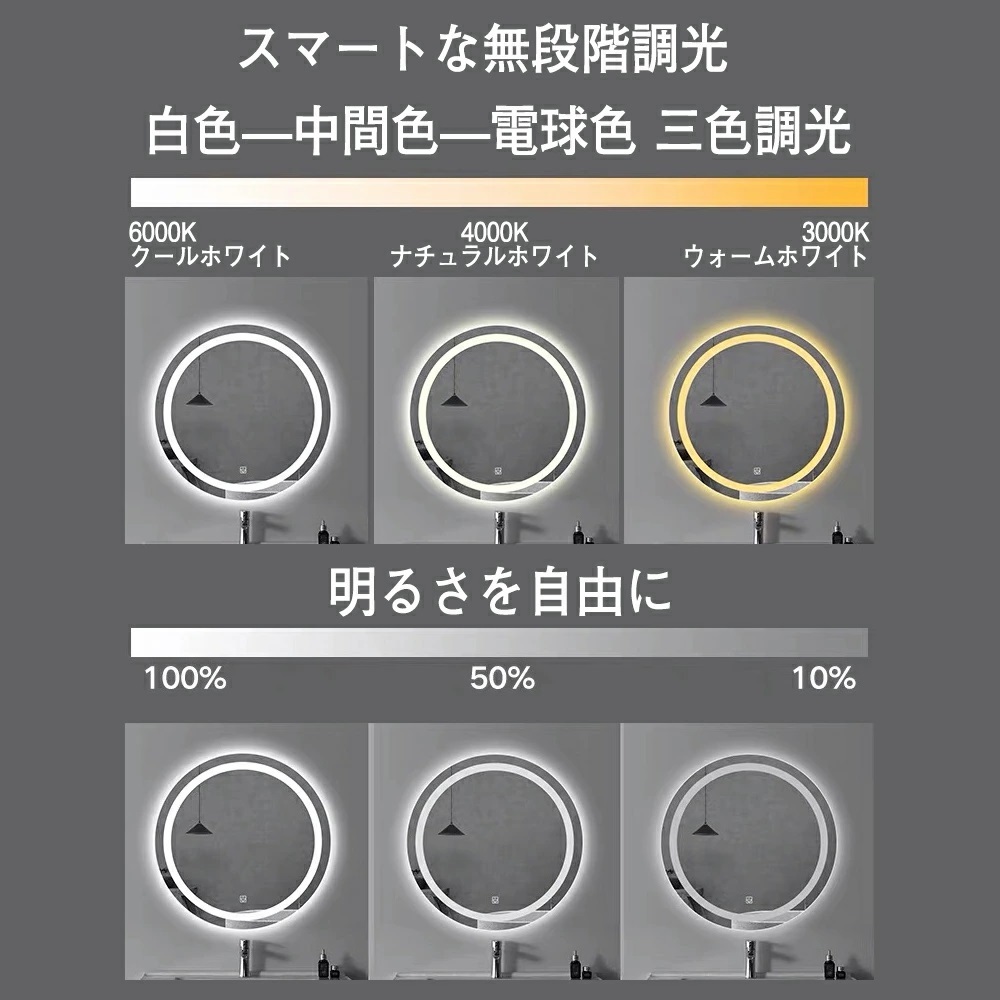 ミラー LED 壁掛け ライト付き 丸型ミラー 三色調光 調色 暖色 白色 60X60cm 浴室用化粧鏡 浴室鏡 洗面所 洗面鏡 理髪店 LEDミラーライト 明るい 曇り止め機能 メイク おしゃれ 照明 コンパクト 円型 美容室 メイクアップ 流行
