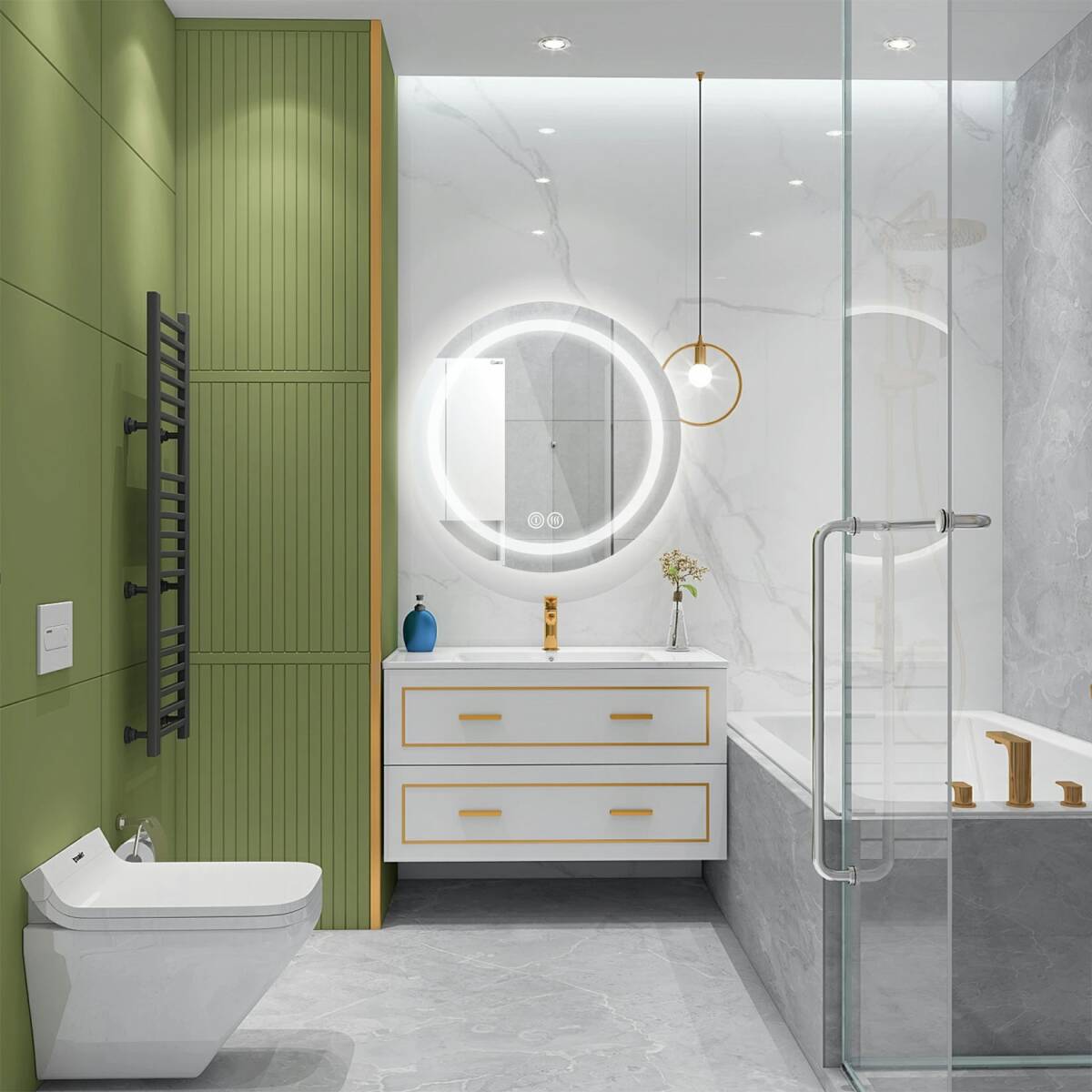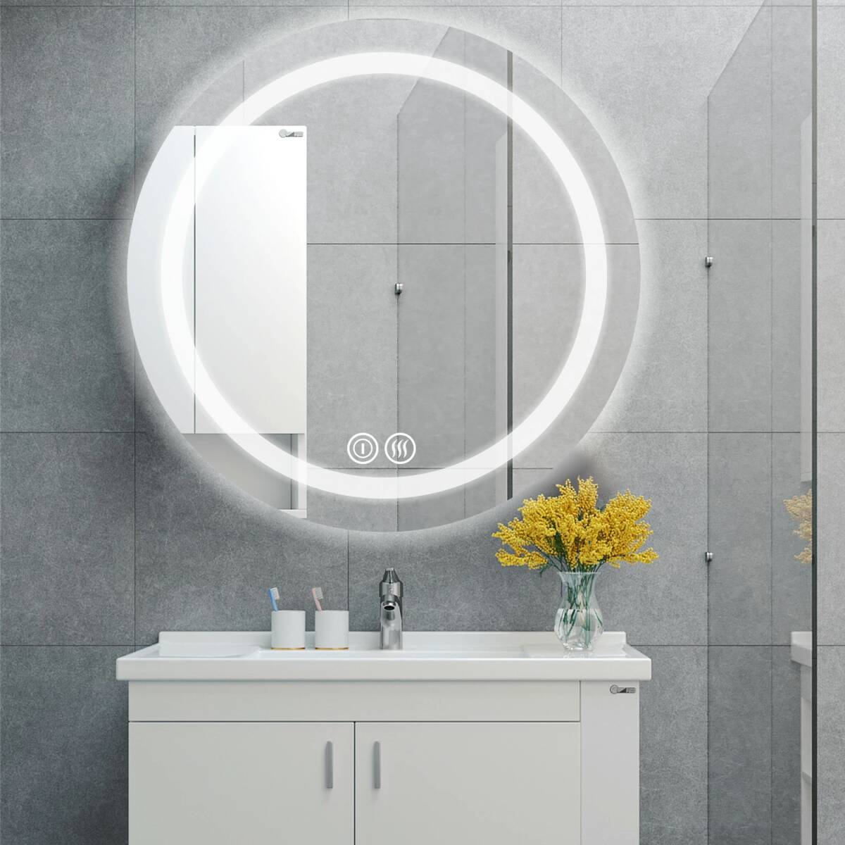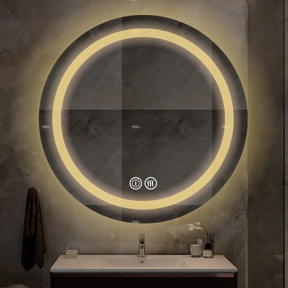ミラー LED 壁掛け ライト付き 丸型ミラー 三色調光 調色 暖色 白色 60X60cm 浴室用化粧鏡 浴室鏡 洗面所 洗面鏡 理髪店 LEDミラーライト 明るい 曇り止め機能 メイク おしゃれ 照明 コンパクト 円型 美容室 メイクアップ 流行