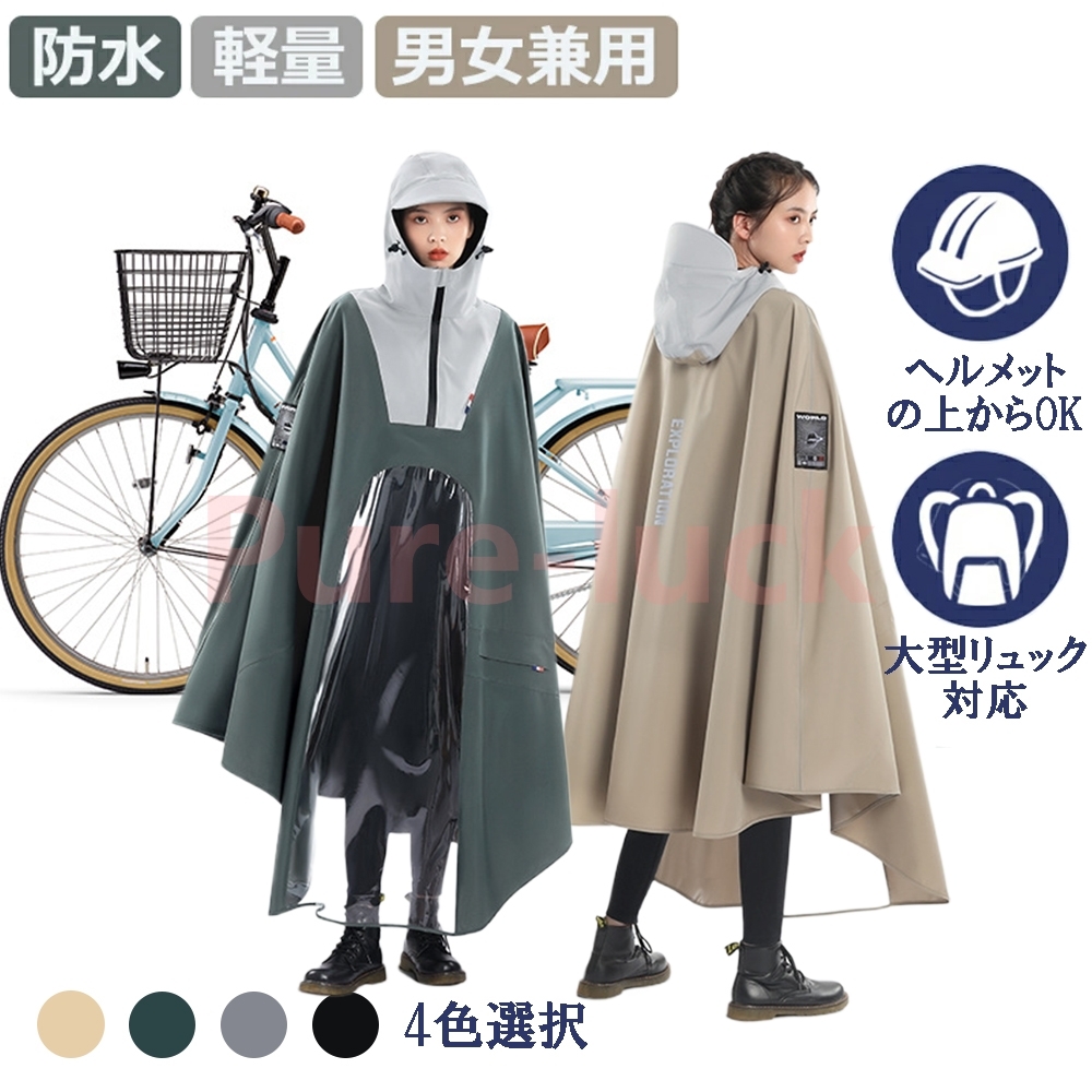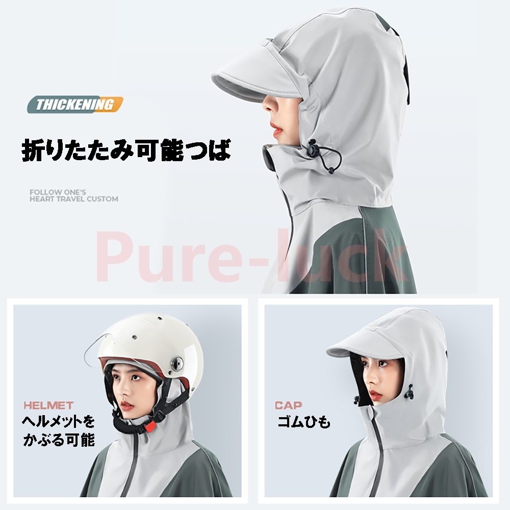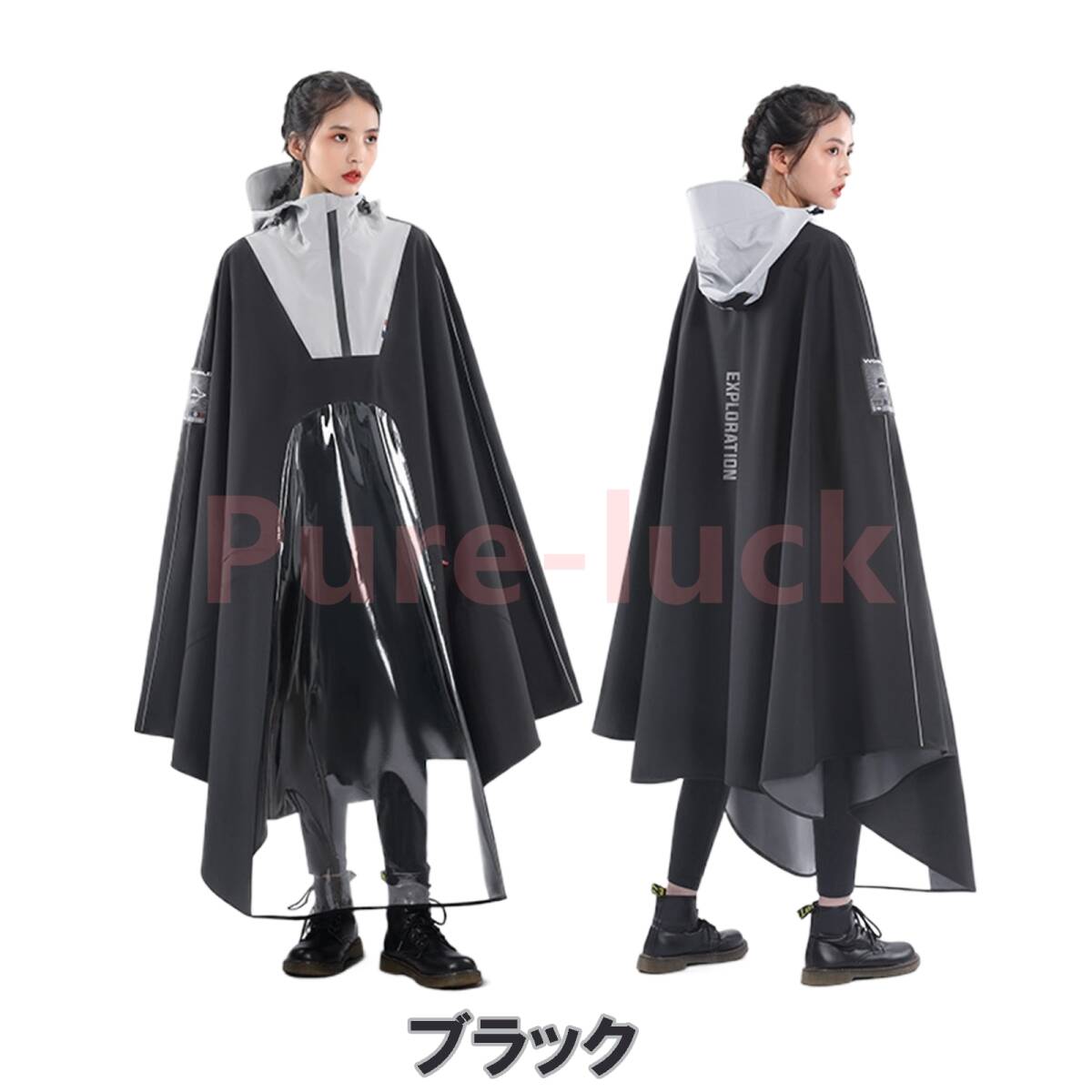 レインコート 自転車用レインコート バイク用 レインポンチョ 二重ツバ 安全ロング丈 カッパ リュック対応 透明バイザー レディース 多機能