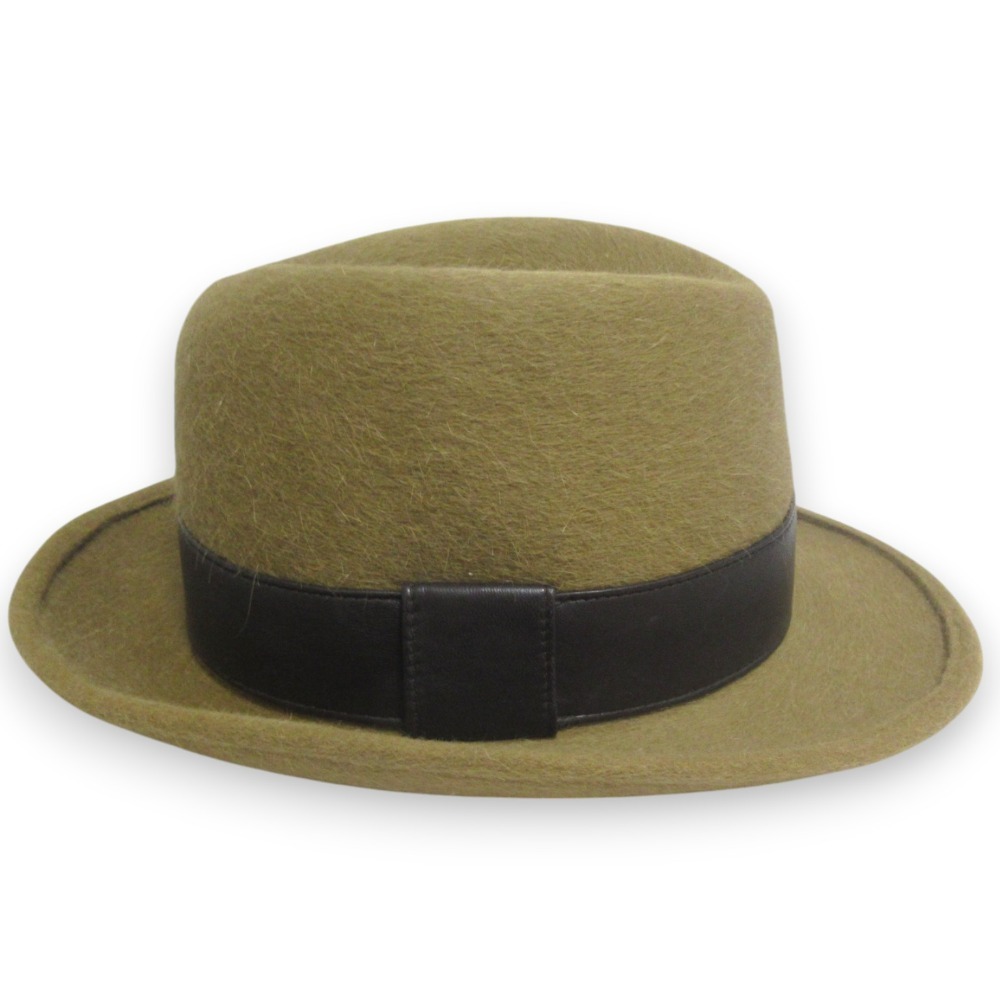 商品名:HERMES エルメス ウール100% レザートリム ボーラーハット 帽子 サイズ56 カーキ ブラウン