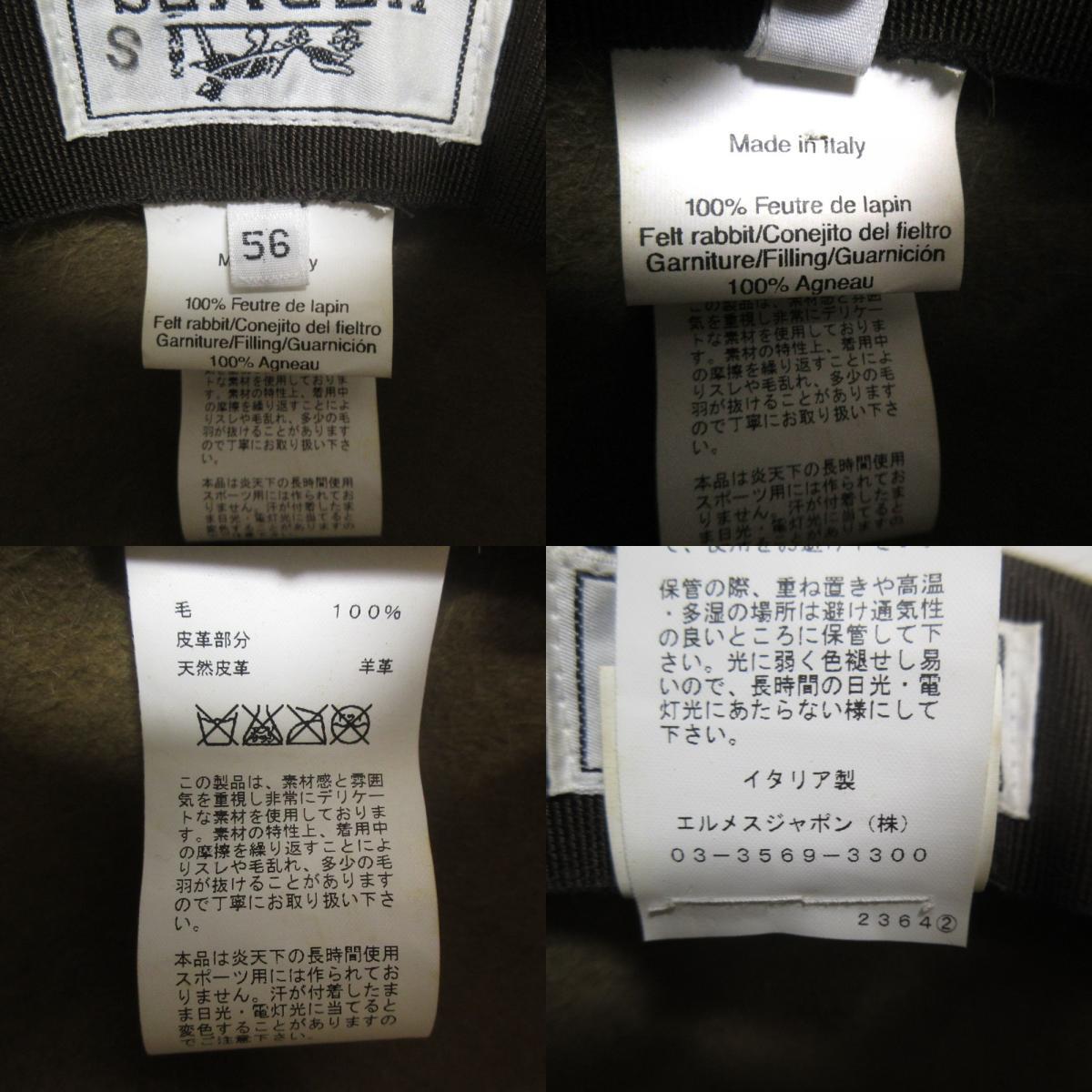 美品 HERMES エルメス ウール100% レザートリム ボーラーハット 帽子 サイズ56 カーキ ブラウン