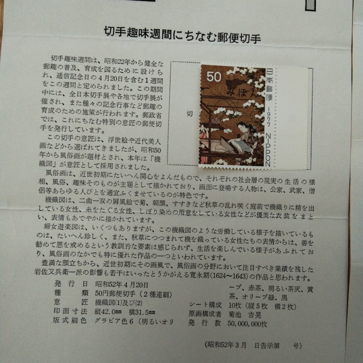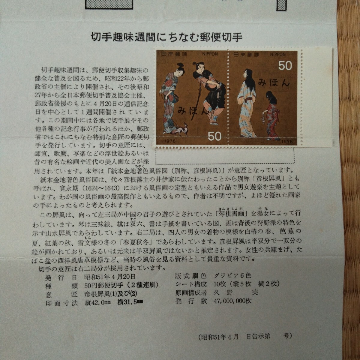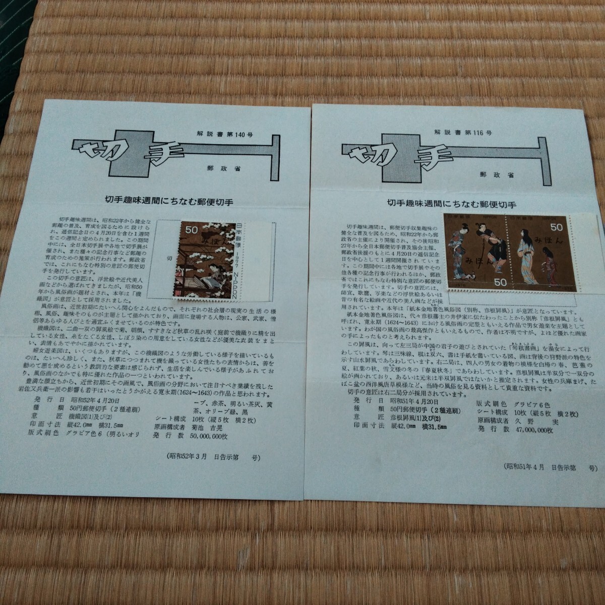 昭和51年、52年、切手趣味週間解説書、みほん切手、折り目あります。