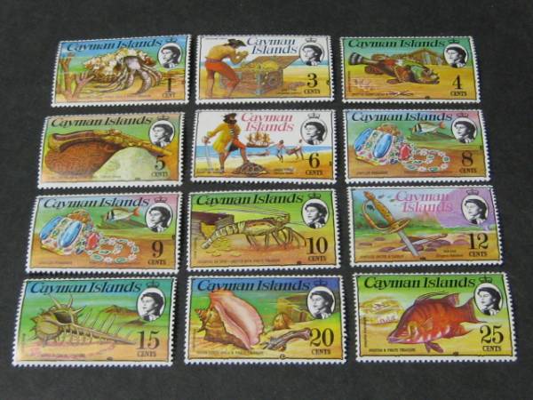 【№219】 カイマン諸島切手 1974年 海賊・魚など 12種