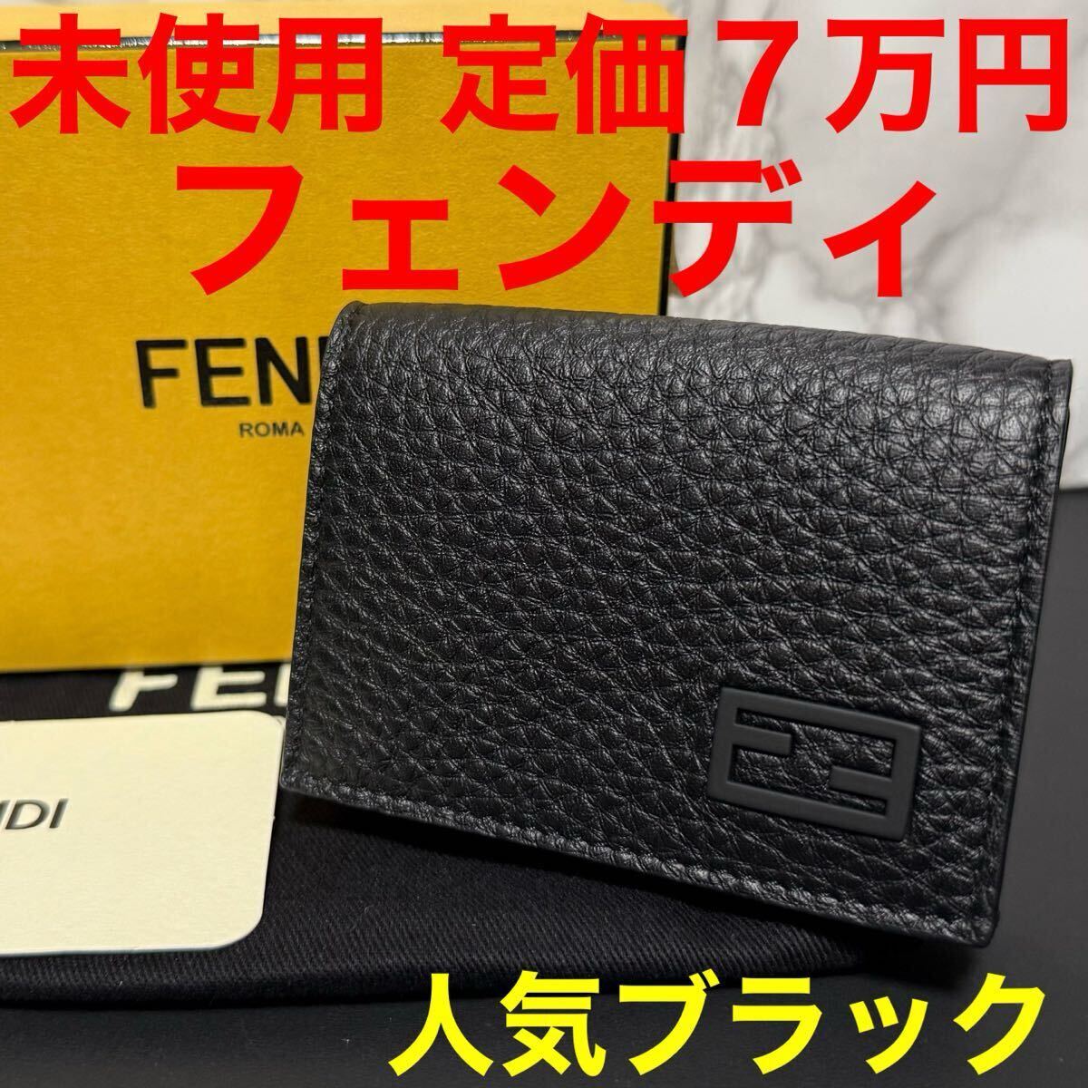 FENDI フェンディ 未使用 三つ折り財布 7M0280 ブラック 黒色 レザー ユニセックスデザイン FFマーク