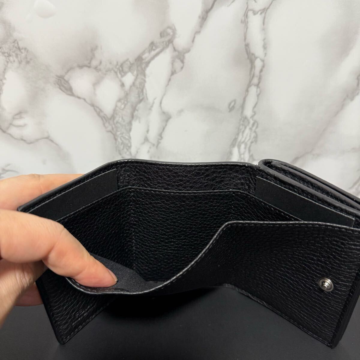 使い勝手のいいコンパクサイズに、シボ感の強い上質なブラックレザーとフロントにロゴパーツを配置したとてもお洒落で上品な大人気のモデルです。