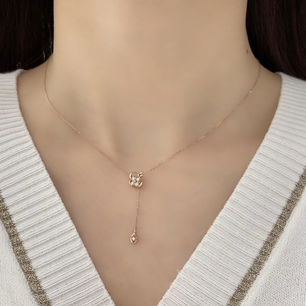 ダイヤモンドがキラリと輝く、エレガントなヴァンドーム青山のネックレスです。トップ部分でチェーンのスライドが可能です。新品仕上げ済みです。 |