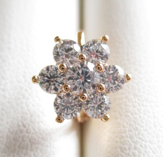 ◆YG キュービックジルコニア デザイン フープピアス◆お花 お値下げ!