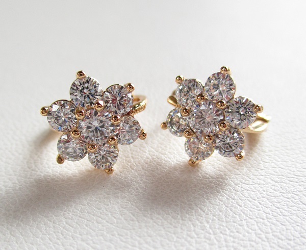 YG キュービックジルコニア デザイン フープピアス◆お花