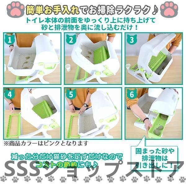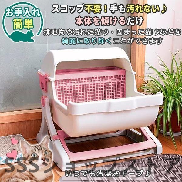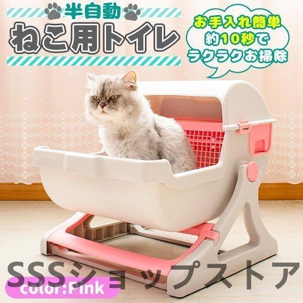 半自動 猫トイレ 回転して処理が出来る 固まる猫砂用 大型 本体 大きめ 隠す 半自動猫トイレ 半自動トイレ 猫用トイレ キャットトイレ