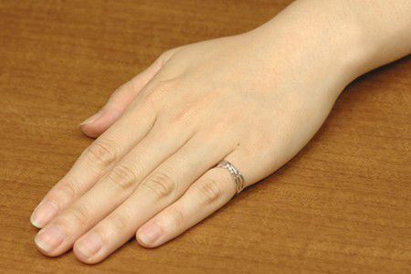 リングのトップ部分はダイヤモンドと3本のラインが絶妙に絡み合い印象的で繊細な雰囲気です。