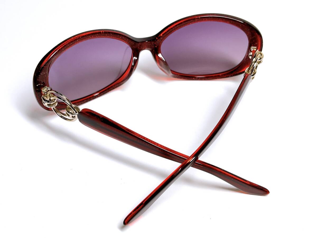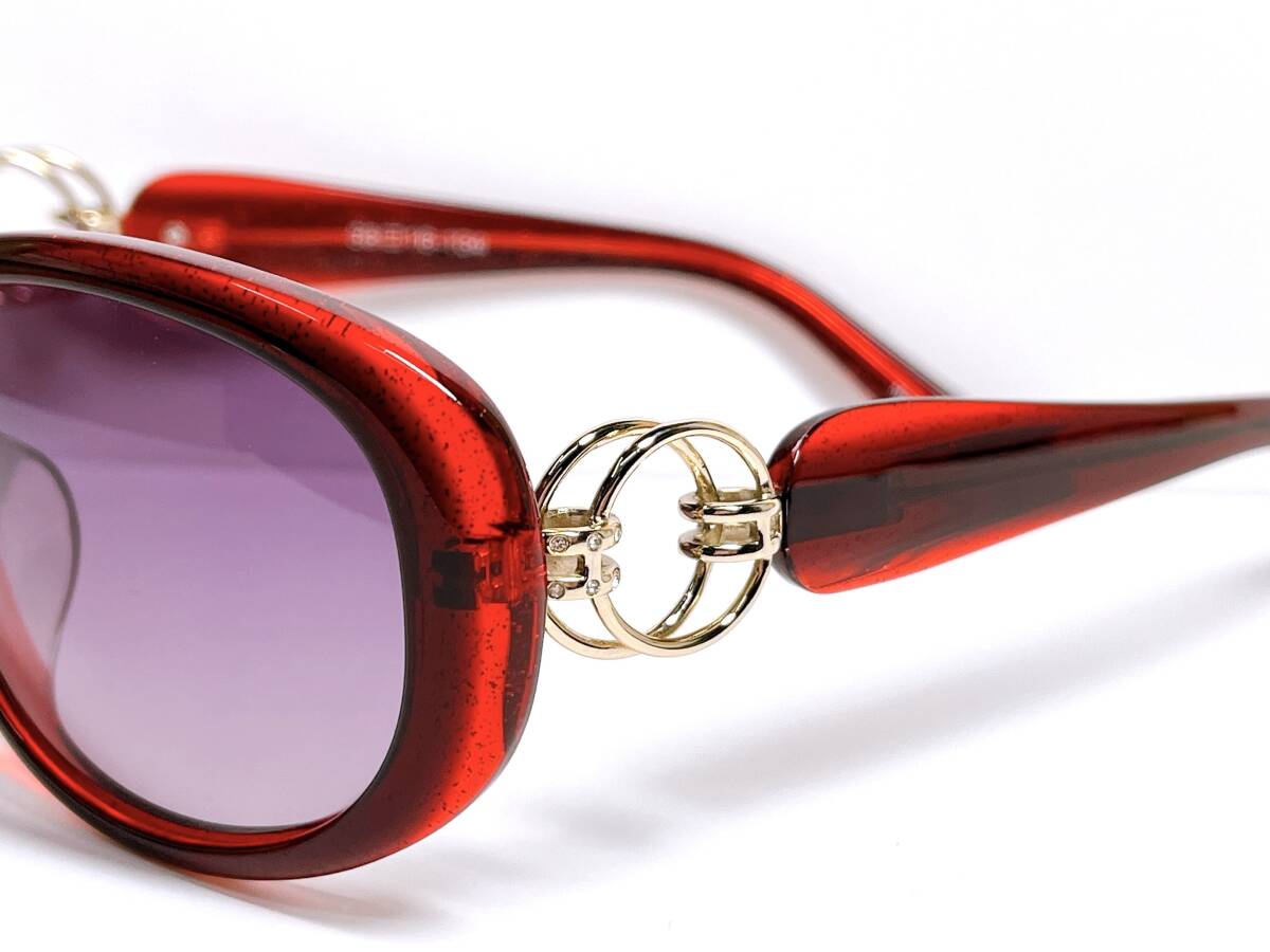 赤いセルフレームに、ワインカラーの偏光レンズです。