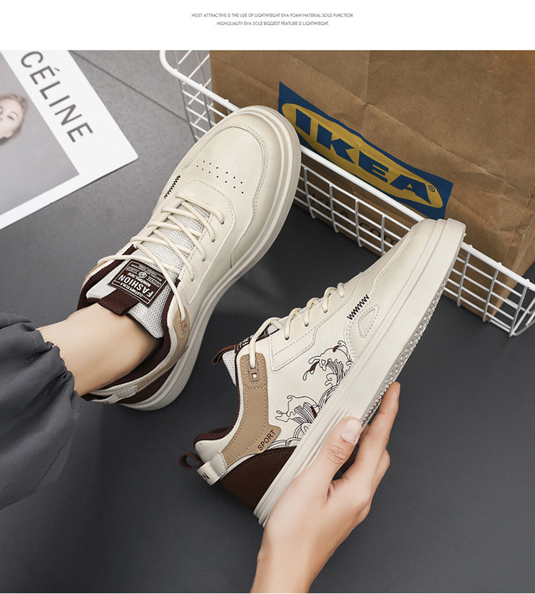 新品上質 サイズ選択可スニーカー 靴 メンズ 厚底 運動 幅広 シンプル 安い カジュアル ベージュ 27CM