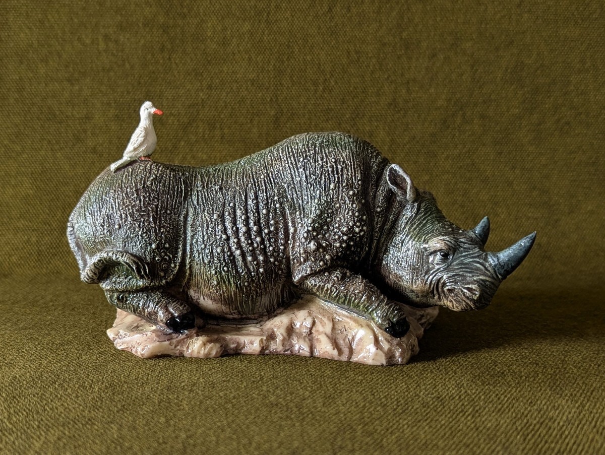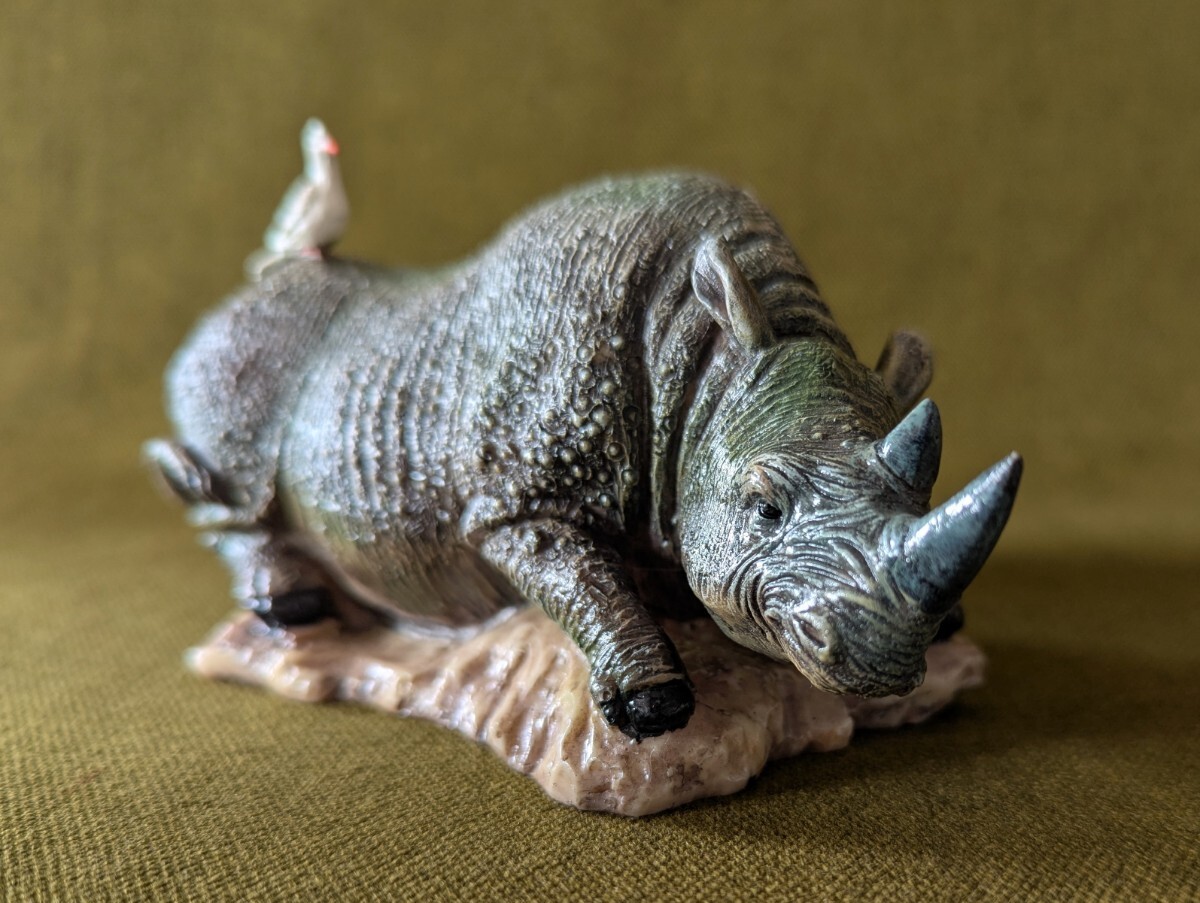 年代不明 サイ さい rhinoceros フィギュア 模型 置物 プラスチック 樹脂 インテリア 高さ8cm 横15cm 古物 コレクション 中古 used