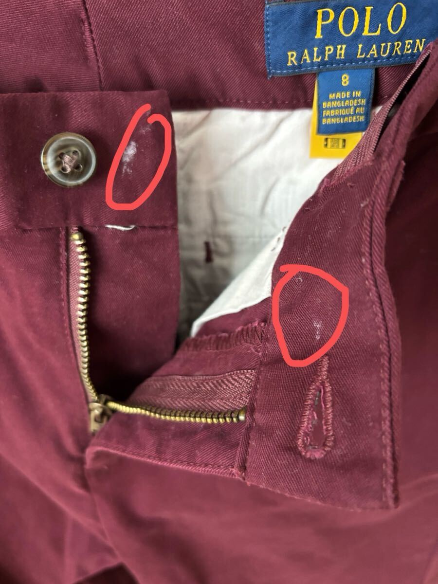 ウエストの内側に日焼け止めのシミが付いています。右脚にシミがあります。他に見落としがある可能性があります。気になられる方はご入札をご遠慮ください。