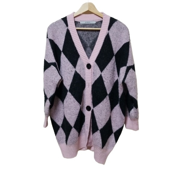 ジョイリッチ JOYRICH カーディガン サイズXS - ライトピンク×黒 レディース 長袖 トップス