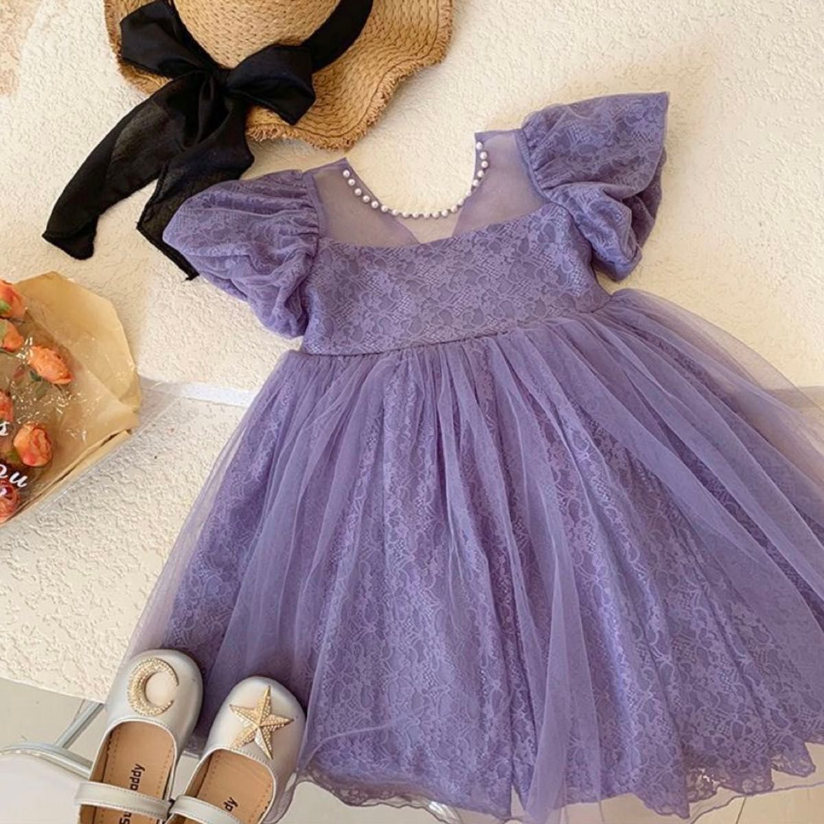 刺繍チュールや首元のパールなどディティールが可愛いデザイン。