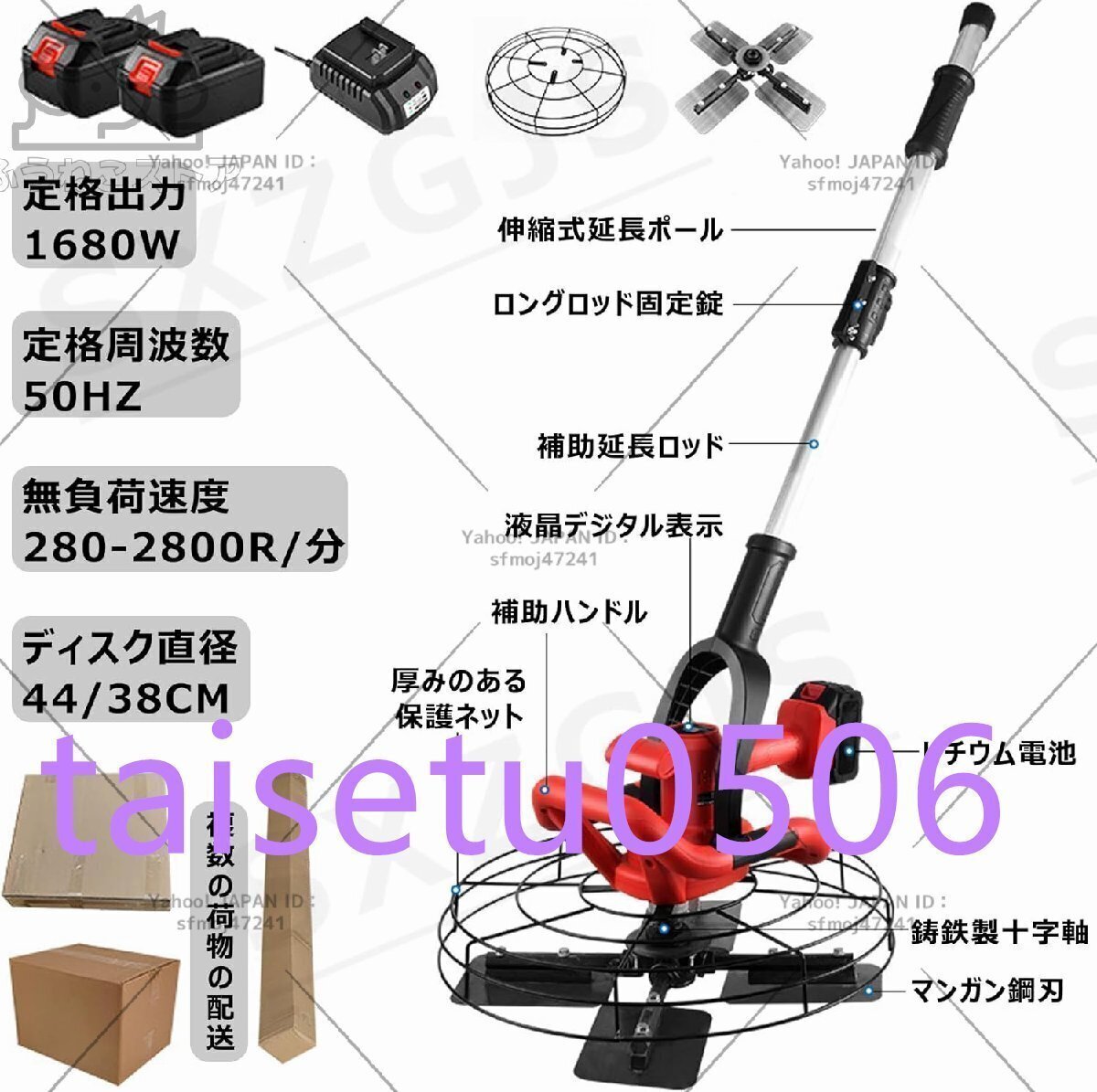 SXZGJS---【新しい包装】---電動/充電式トロウェル使用すると、壁や床の左官工事、レベリング、装飾を簡単に完了できます。市場のフィードバックに基づいて、製品のアップグレードが実行されました。 機械の品質はより良く、より安定しています。【製品仕様】含まれるアクセサリの数が異なる 3 つの異なるパッケージが利用可能です。 A:電動トロウェル + 大研削ディスク+付属品研磨ディスク5枚B:充電式トロウェル + 大研削ディスク + バッテリー*2 + 充電器+付属品研磨ディスク5枚定格電力: 1680W; 無負荷速度: 280-2800r/min; ムーブメント材質: 全銅モーター; 【製品特徴】新しいパッケージデザインをアップグレード電池式/110V電源式の2種類から選択可能6段階の速度調整伸縮式延長ロッド38cm研磨ディスクアクセサリと併用可能スターラーと併用可能ダブルハンドルデザイン効率的な放熱/高い同心度【注意】:製品についてご質問がございましたら、メールでお問い合わせください。24時間以内にお答えいたします。