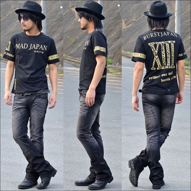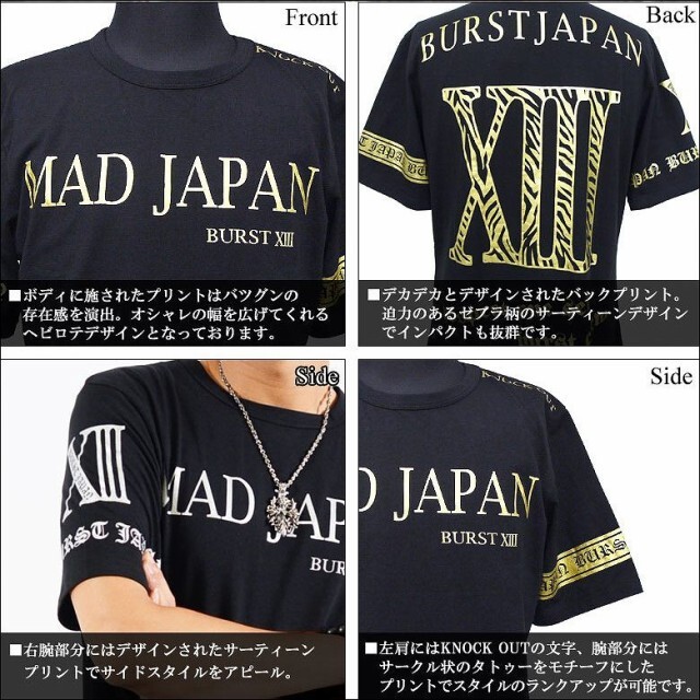 BURST JAPAN バックゼブラ柄半袖Tシャツ 70722 悪羅悪羅 オラオラ  新品 メンズ 黒x銀