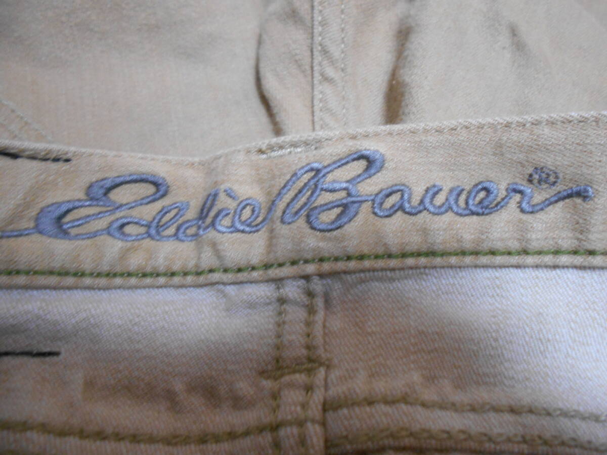 アメリカの歴史あるアウトドアウェアーブランド 「EDDIE BAUER」 カーキカラー ストレッチ入りジーンズ、フロントジッパー開閉