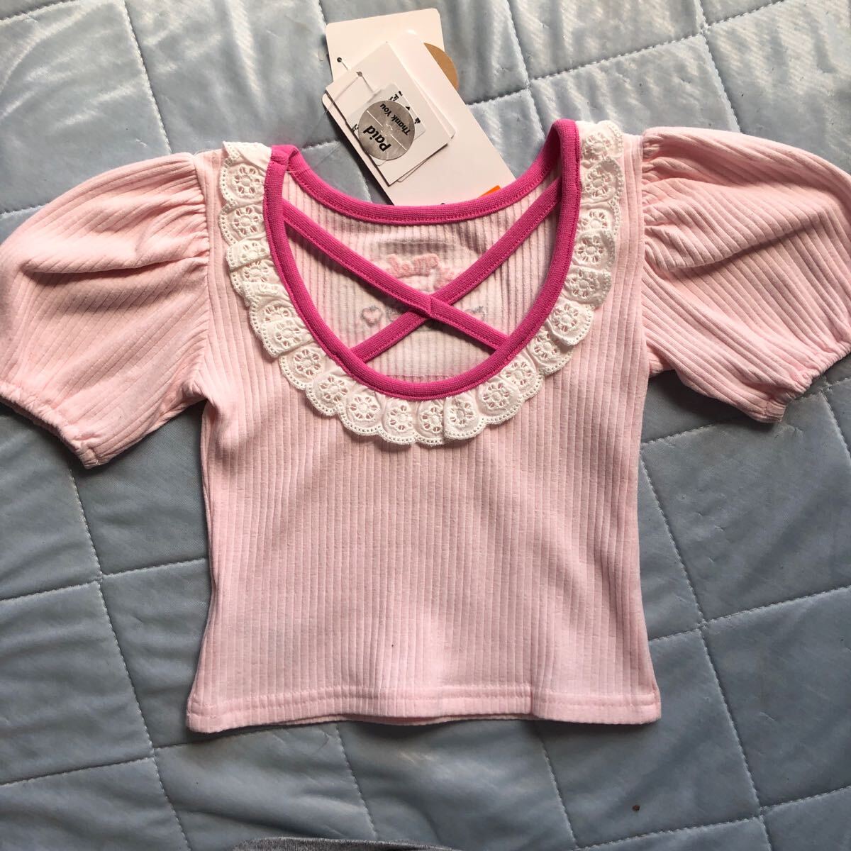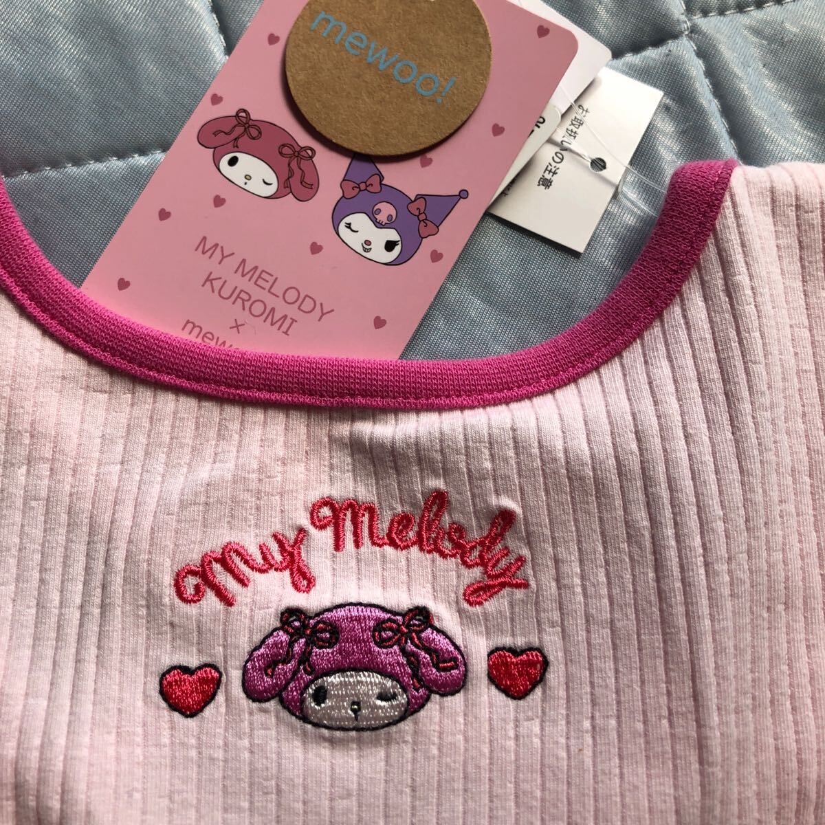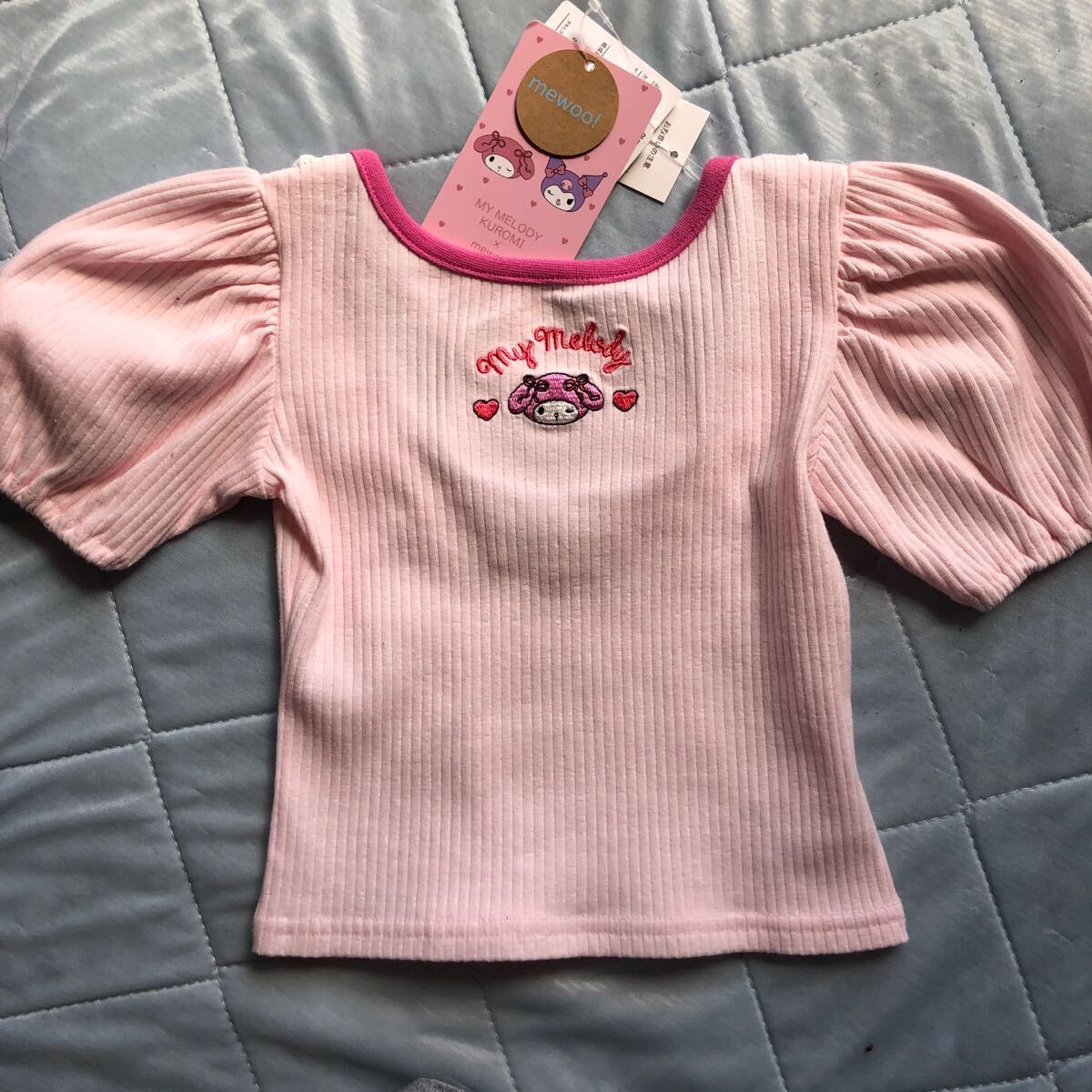 ピンクのフリル付きTシャツ、My Melodyデザイン。