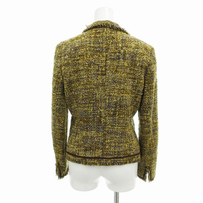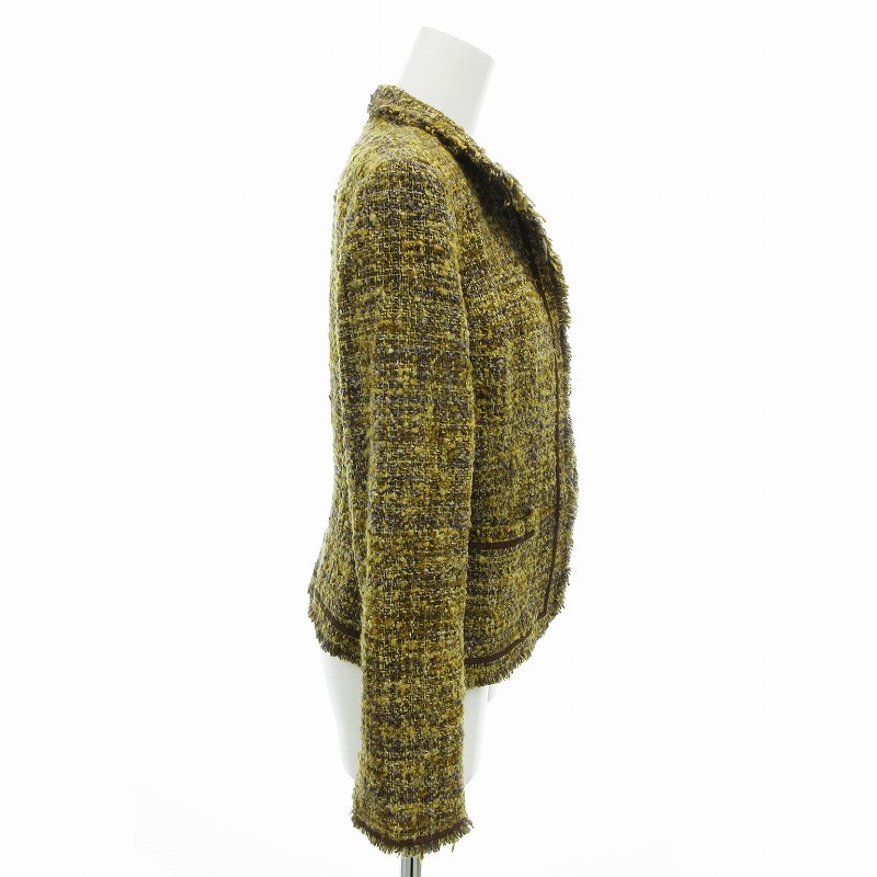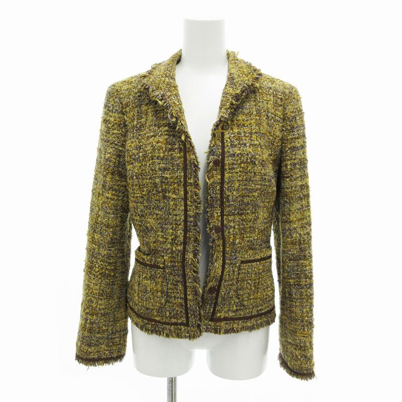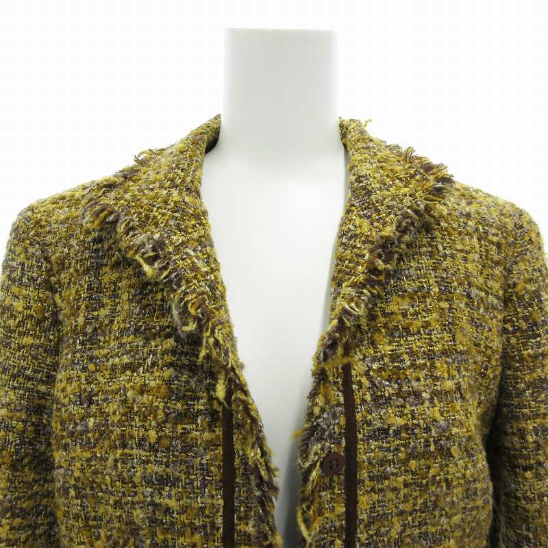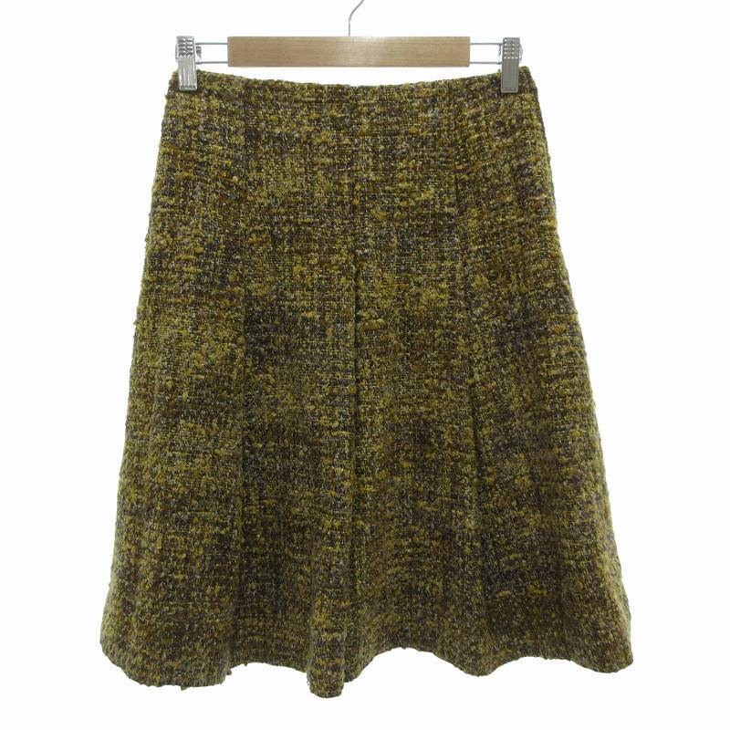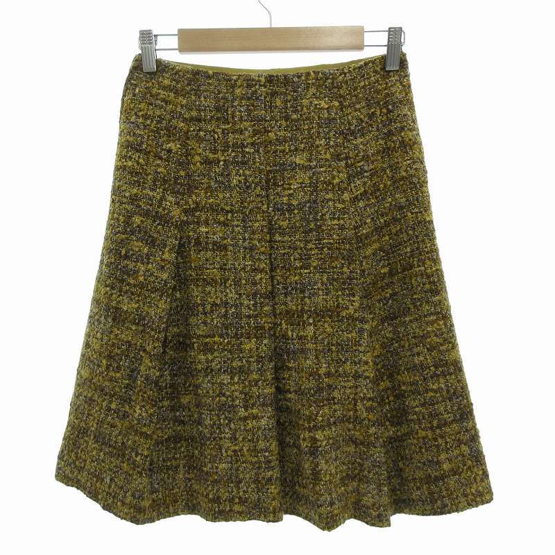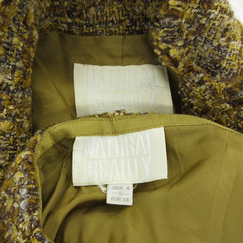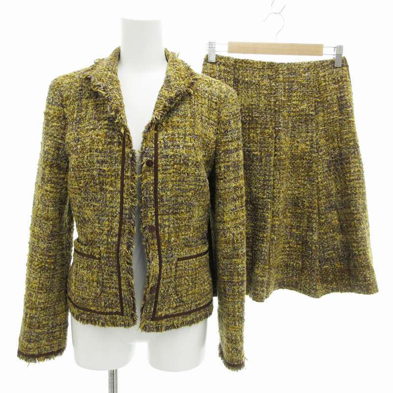 ナチュラルビューティー NATURAL BEAUTY セットアップ スーツ ツイード ジャケット スカート カットオフ 4B ひざ丈 S-M 黄