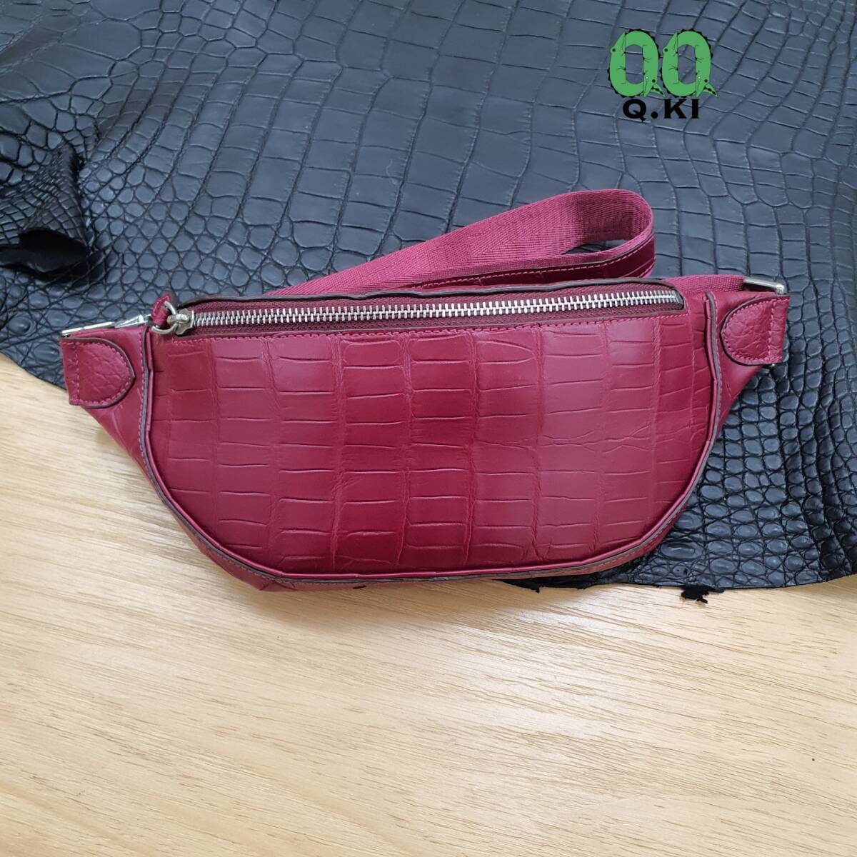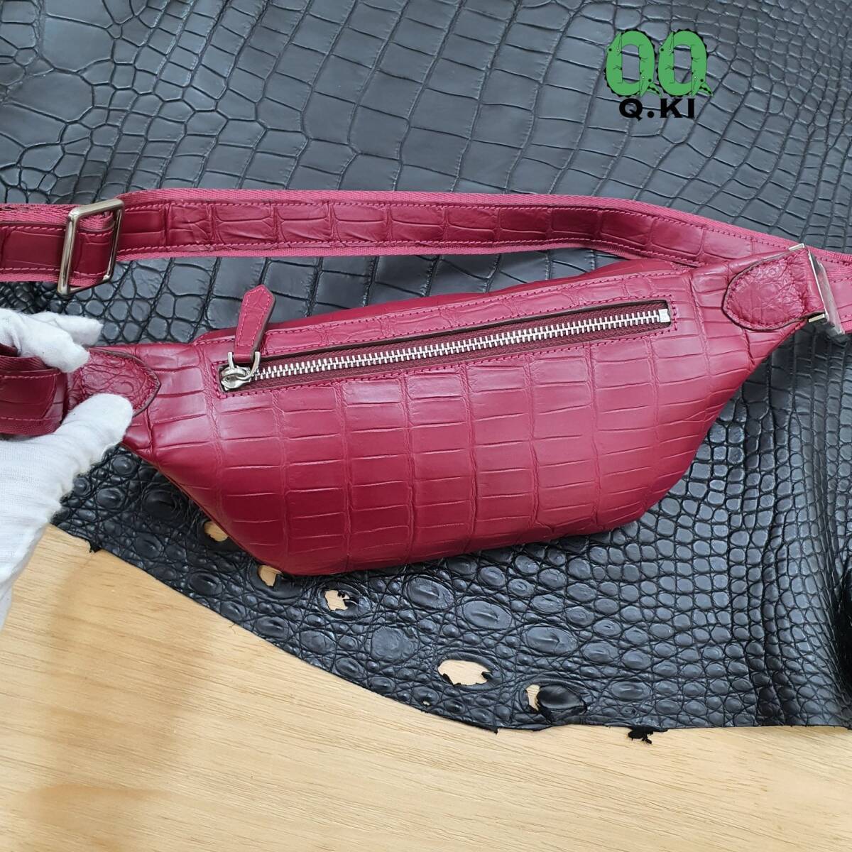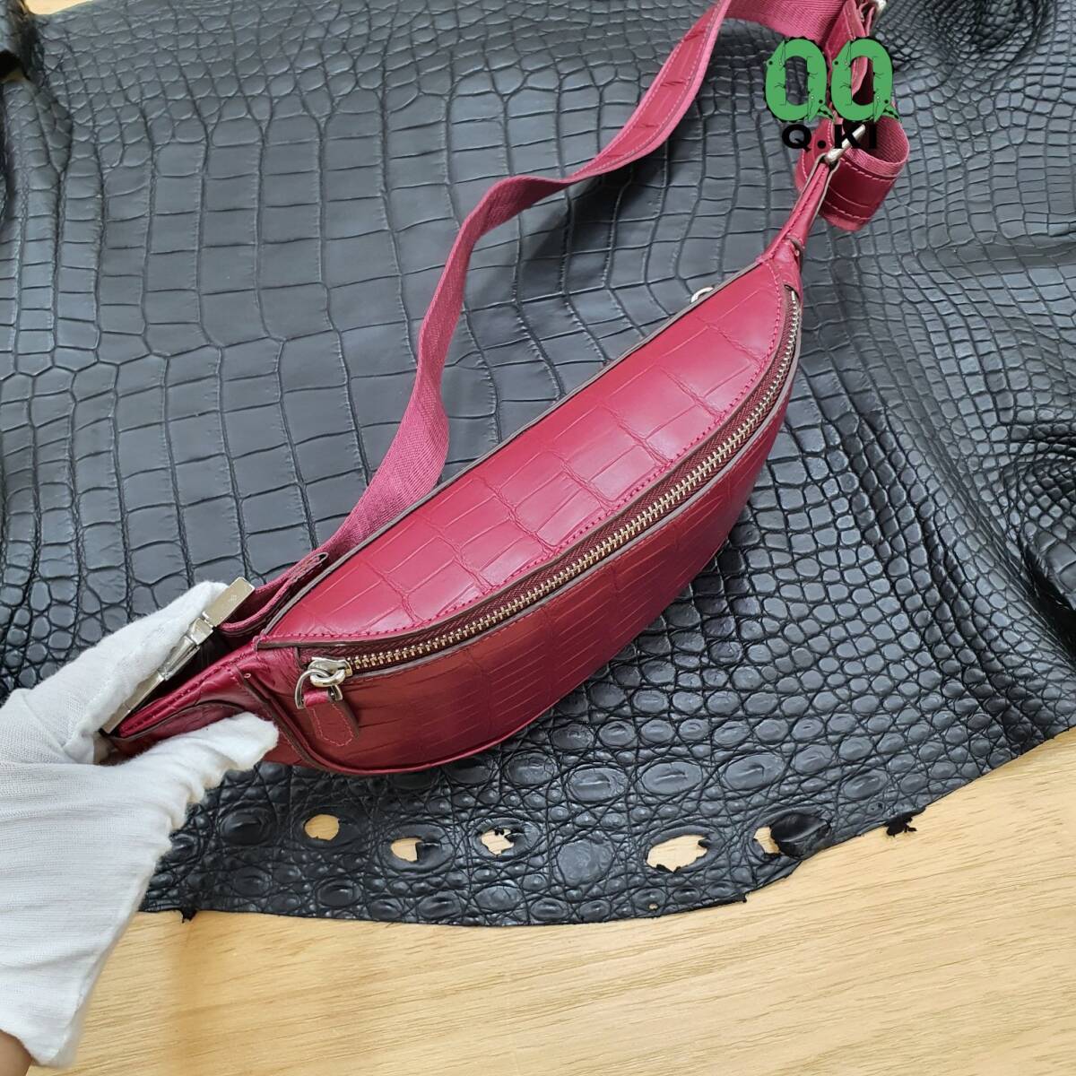多機能 ボディバッグ クロコダイルレザー ウエストバッグ ワニ革 本革 鞄 ウエストポーチ バッグ腹革使用 メンズバッグ レッド
