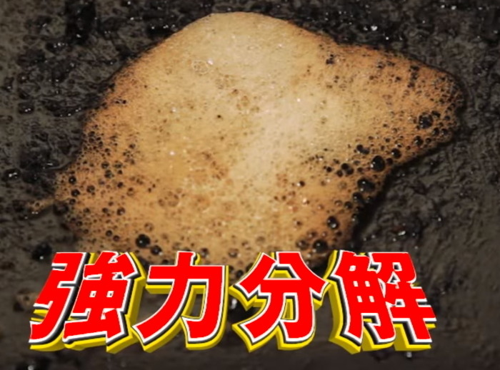●焦げ付いて固着した油汚れも強力に分解、除去します。
