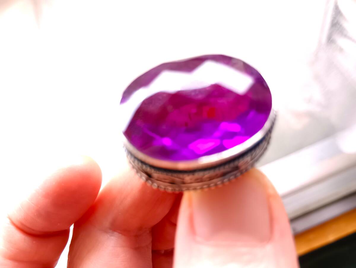 アメジスト リング 指輪 US6.25手元に有ります。売り切り アメジストジェムストーン ハンドメイドアンティークデザインリングジュエリー