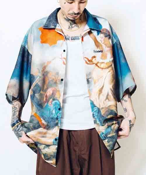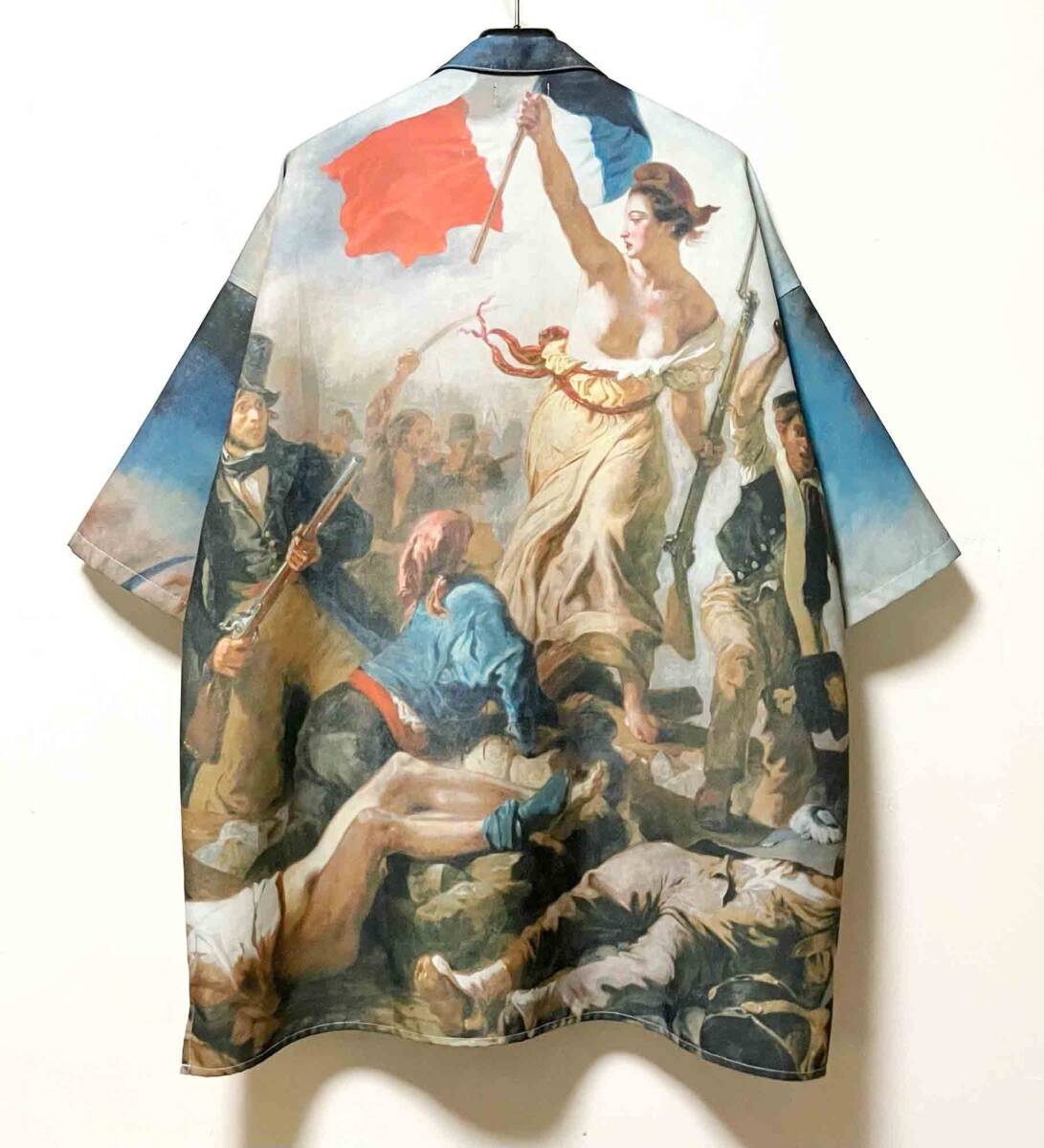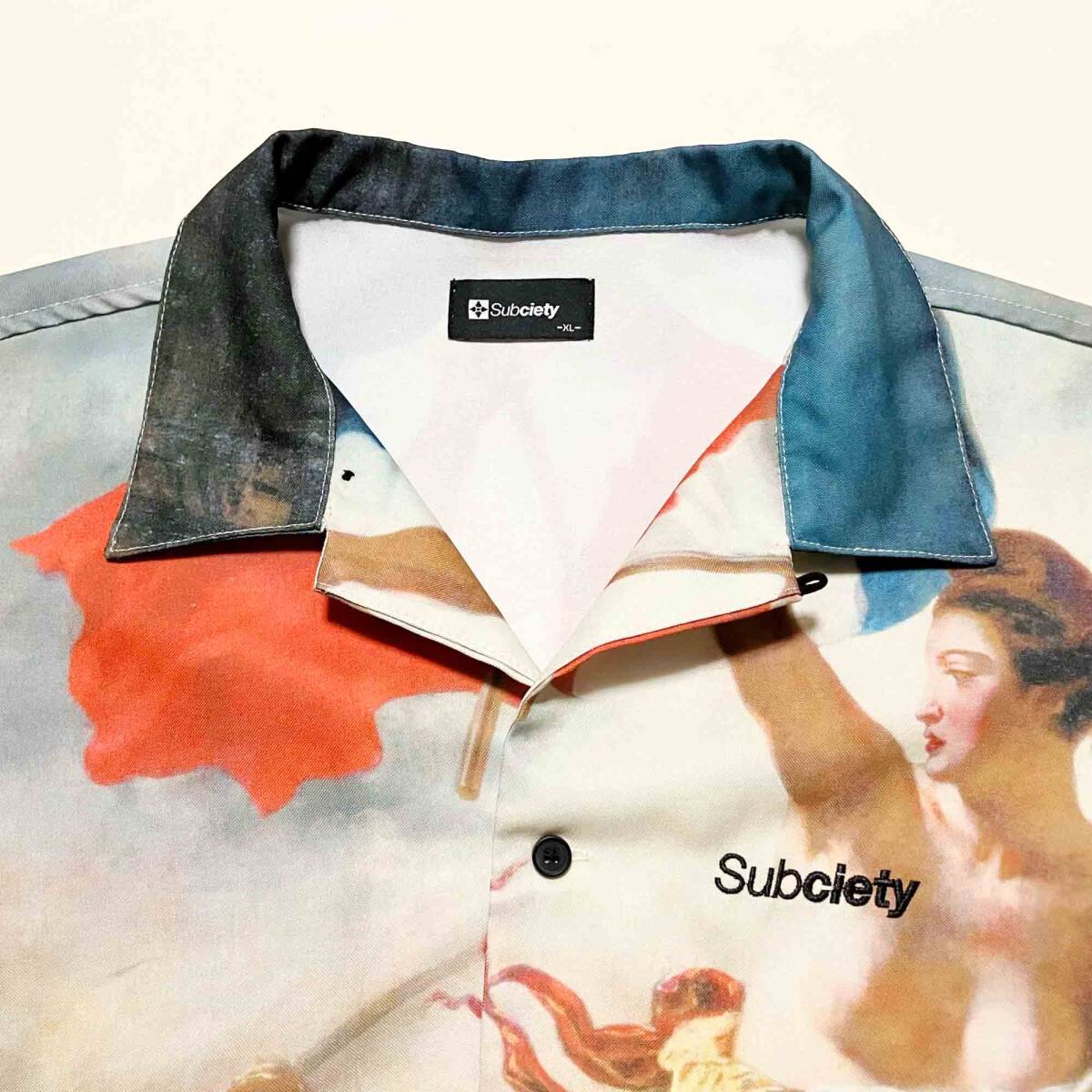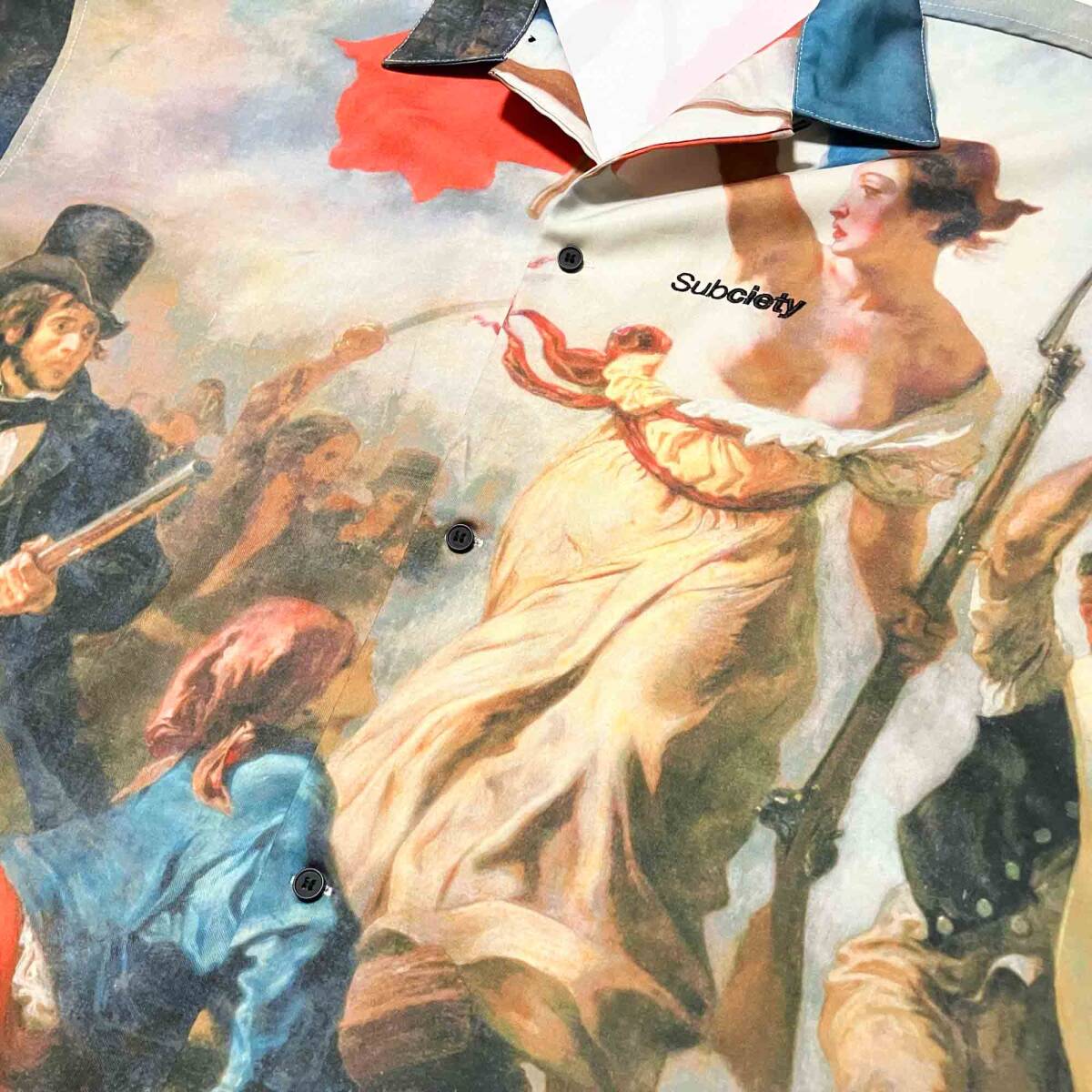 ●美品 SUBCIETY サブサエティ オープンカラーシャツ ドラクロワ 民衆を導く自由の女神 転写プリント サイズXL
