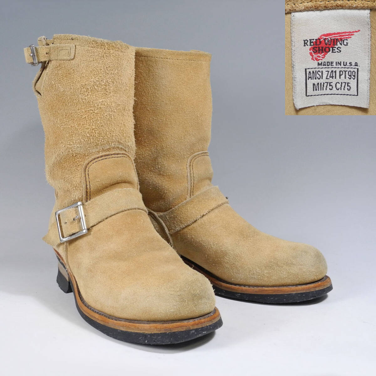 PT99刺繍羽タグ☆レッドウィング8268スエードエンジニアブーツ8D☆ベルト低 旧シルエットPT91ベージュ9269 2268