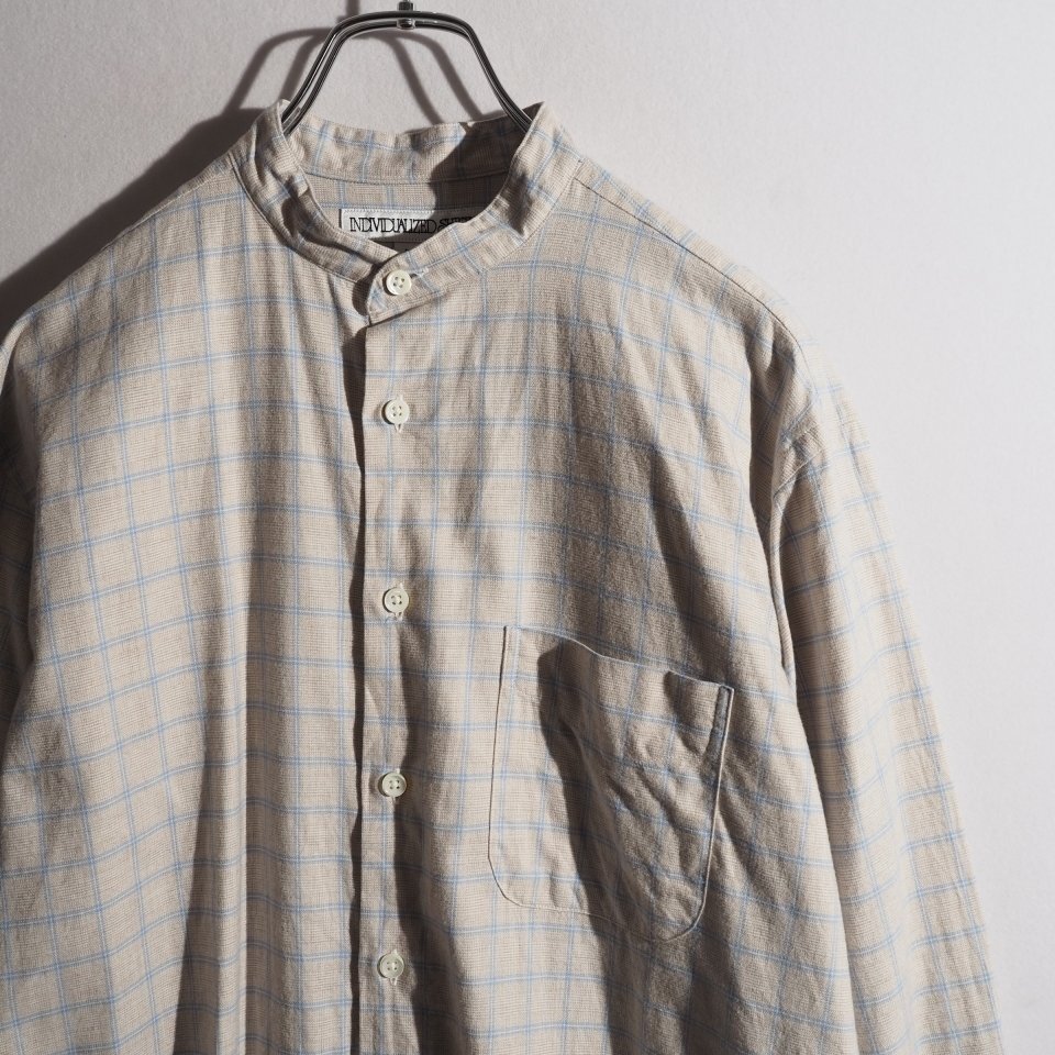 P7805P ▼INDIVIDUALIZED SHIRTS インディビジュアライズド × MAIDENS SHOP▼ 24AW バンドカラーシャツ グレー チェック M 秋~春 rb mks