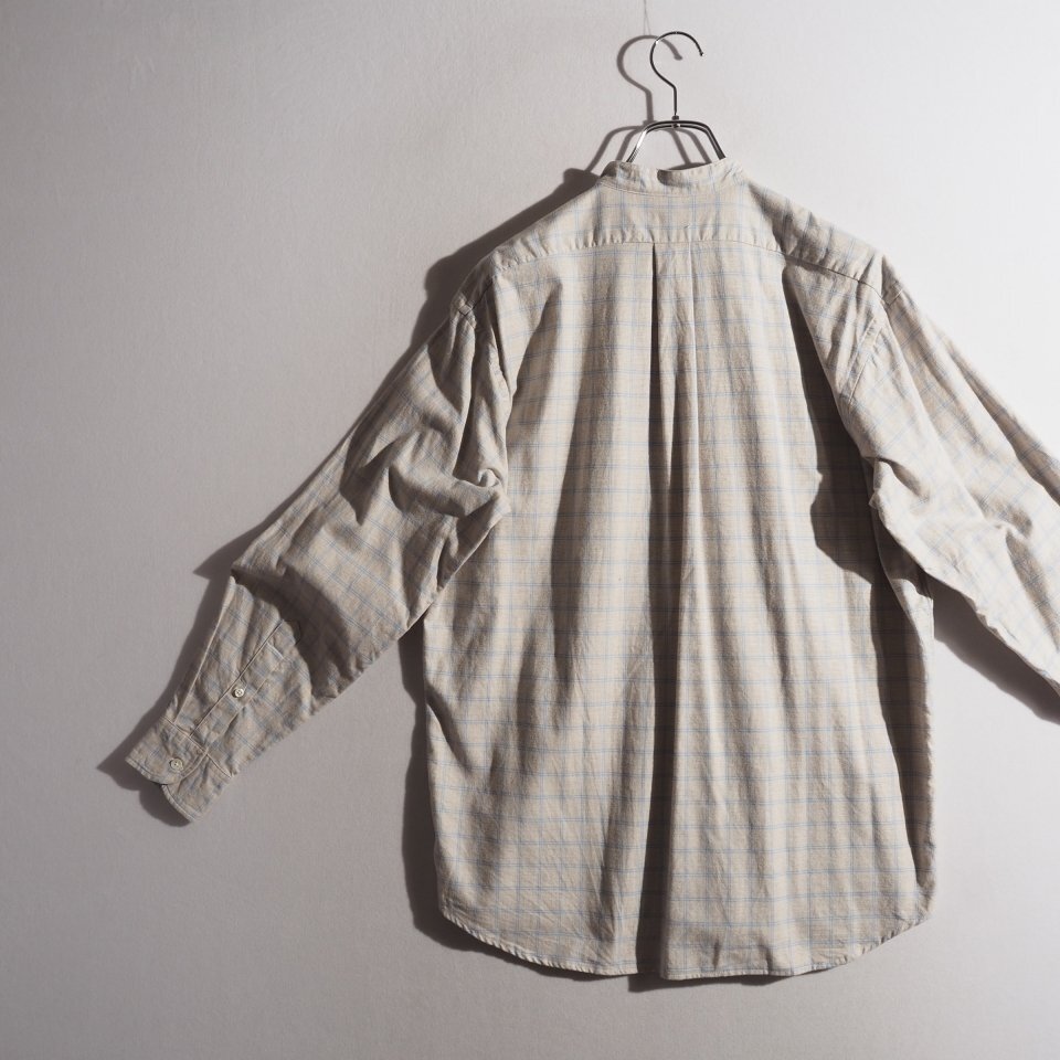 24AW コットンウール バンドカラーシャツ グレー×ブルーチェック M オーバーサイズ