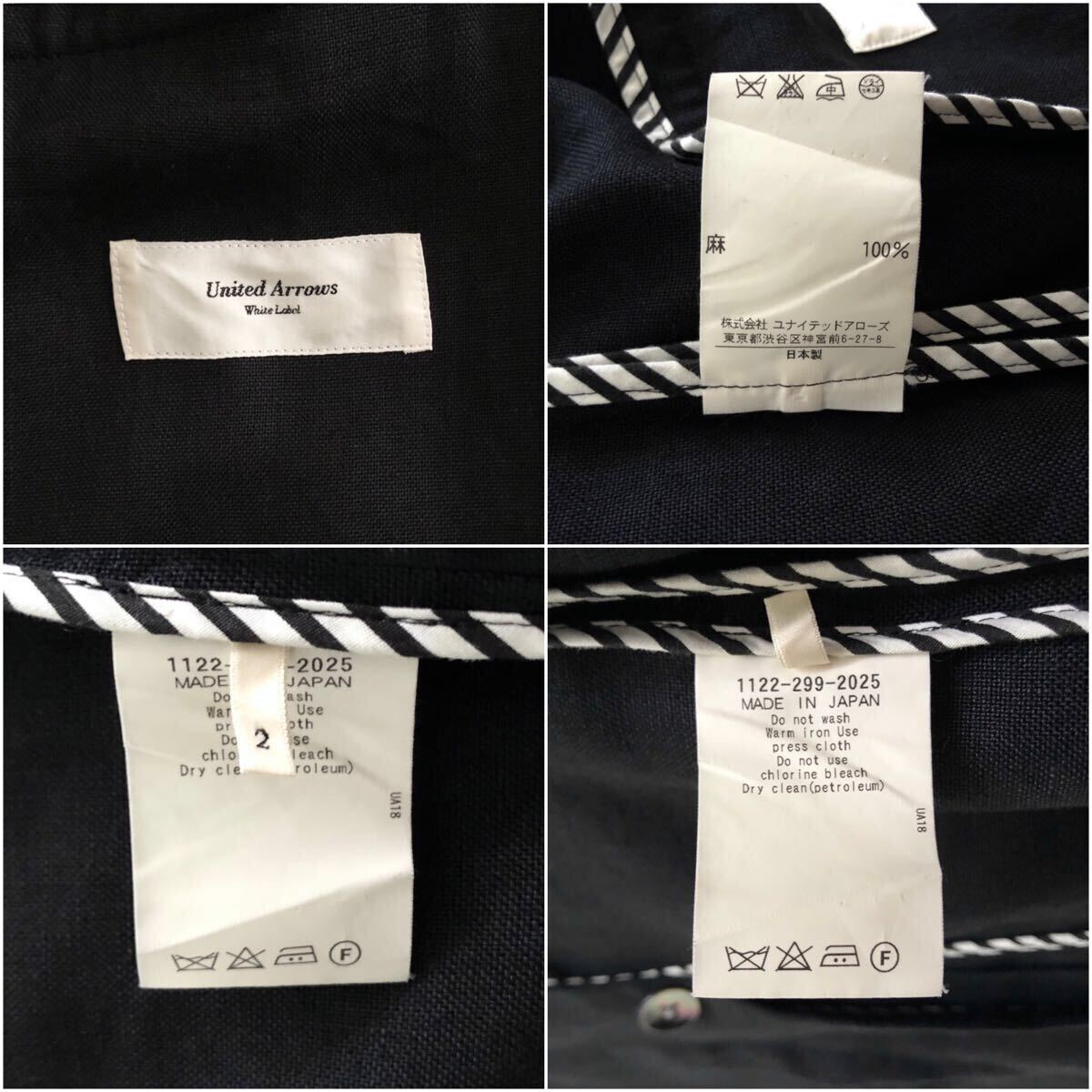 UNITED ARROWS WHITE LABEL リネン カジュアル ジャケット 麻 黒 ブラック サイズ 2( 44 程度) ユナイテッドアローズ ホワイトレーベル