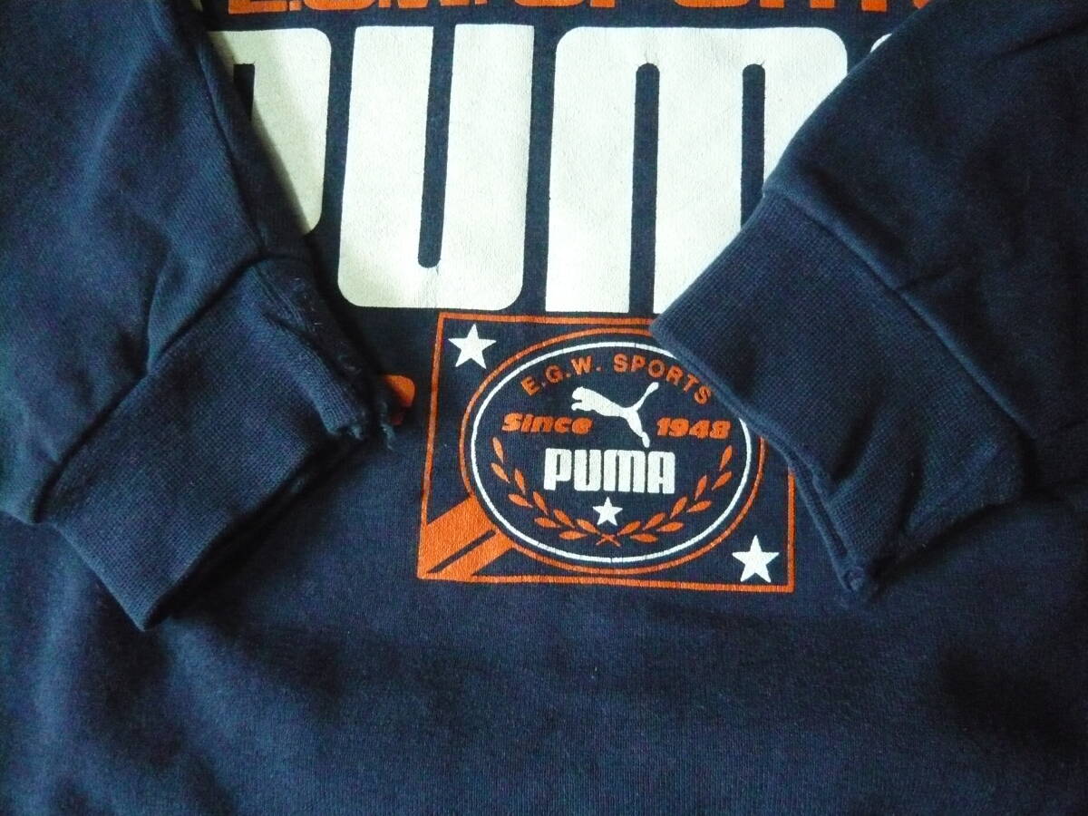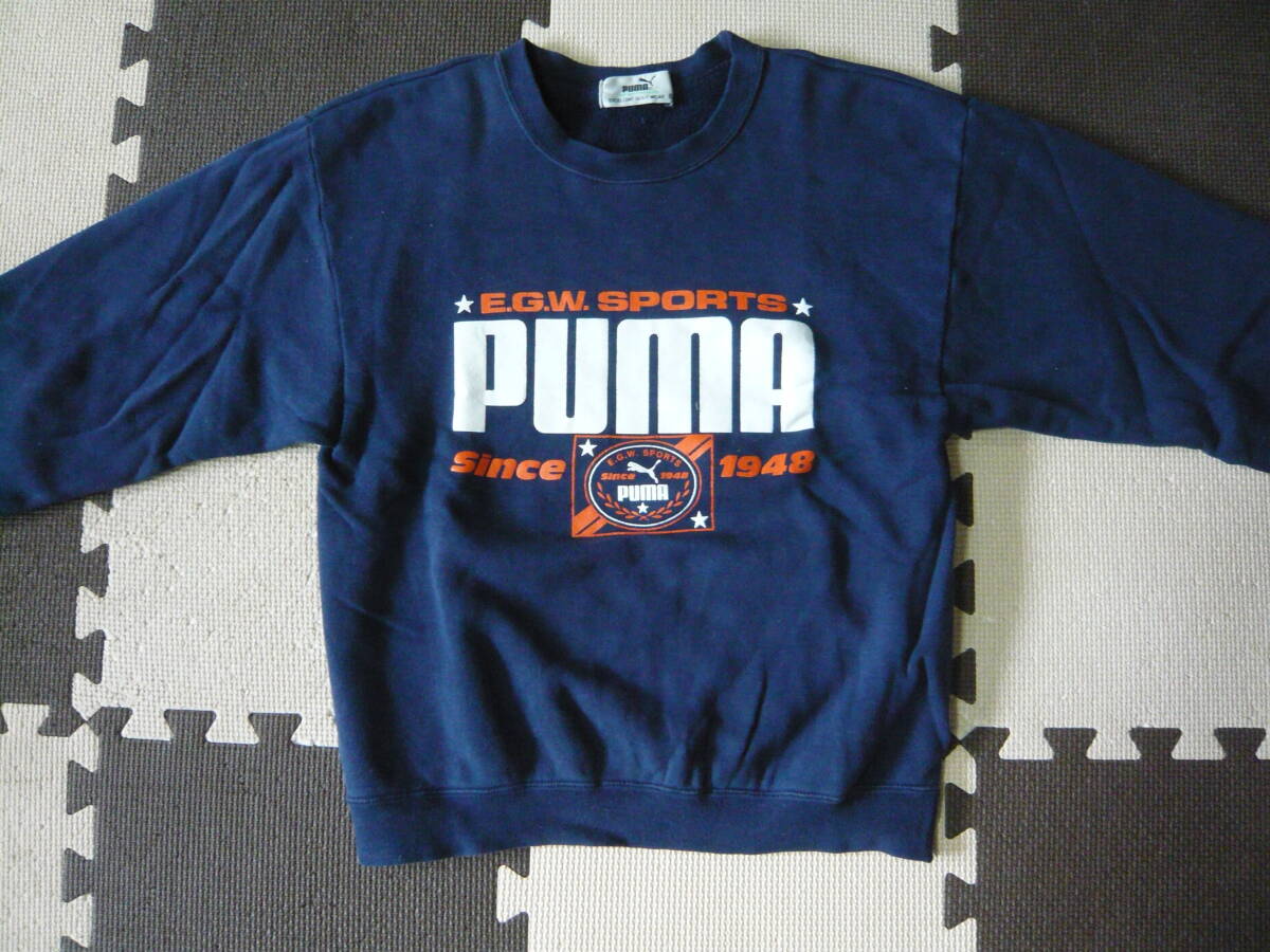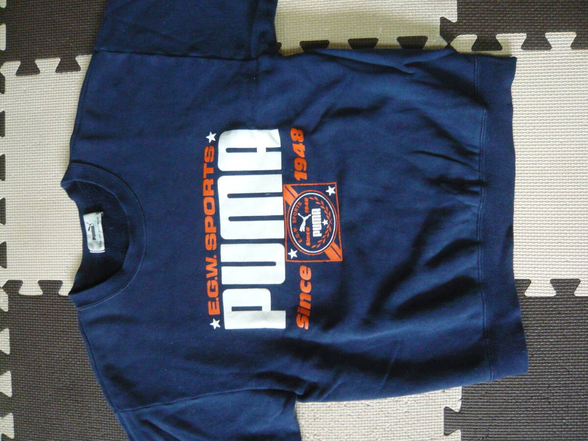 PUMA プーマのスェットシャツ (株)ヒットユニオン 日本製 サイズ表記は150 実寸は肩幅45、身幅43、袖丈50、着丈48センチ位です。両袖口に多少のダメージがあります。他に特筆すべき問題点はないと思いますが子供が着ていたものですのでご理解の上入札お願いします。気になる方は入札ご遠慮ください。ノークレームノーリターンでお願いします。