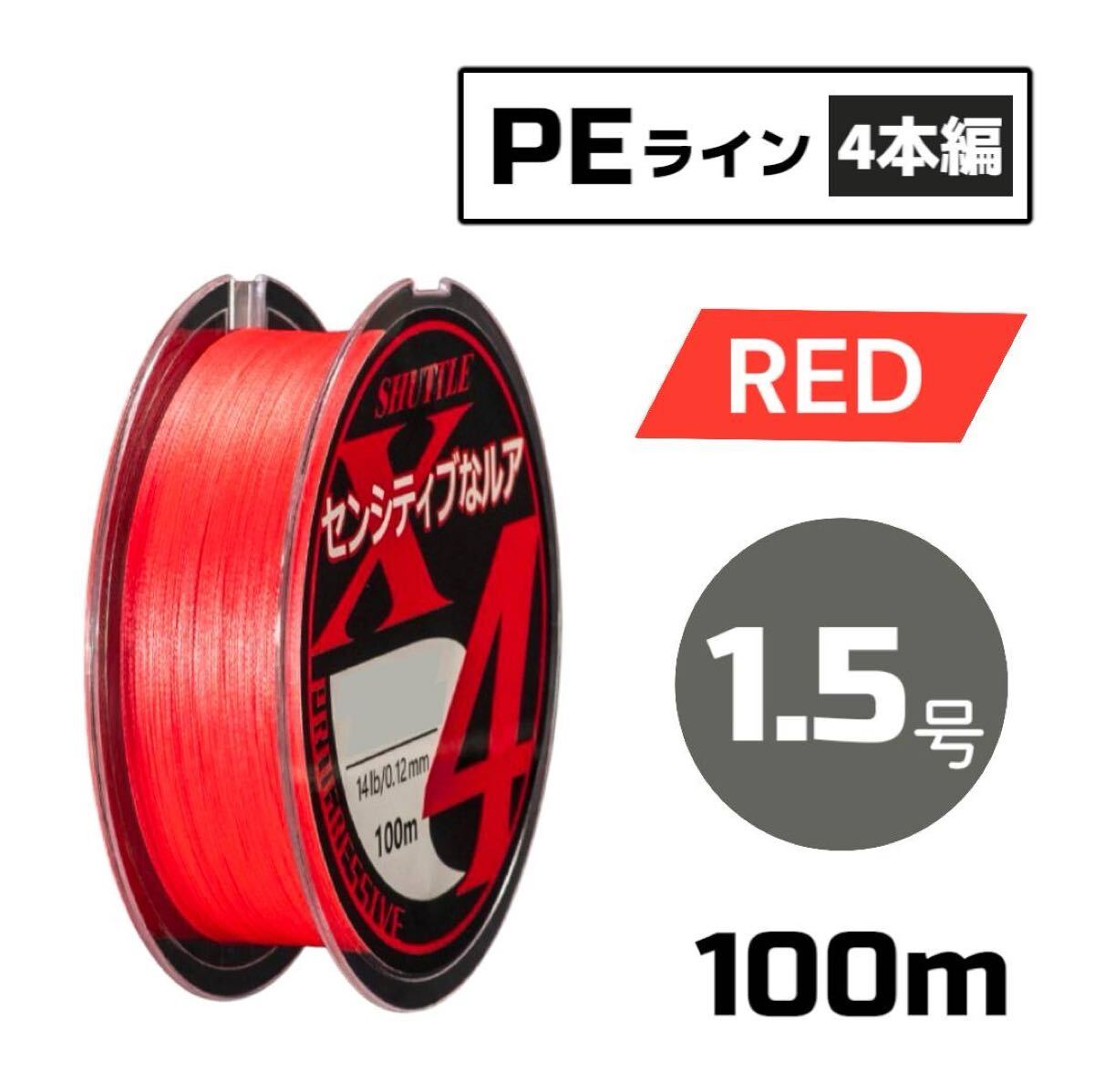 PEライン 4本編み 100m レッド 【 1.5号 】