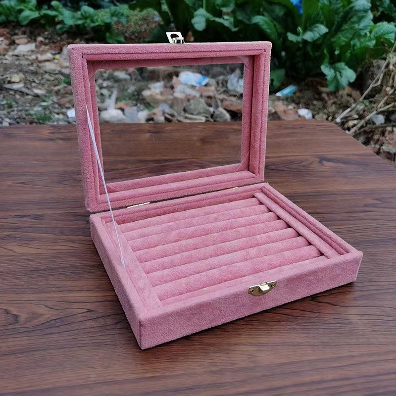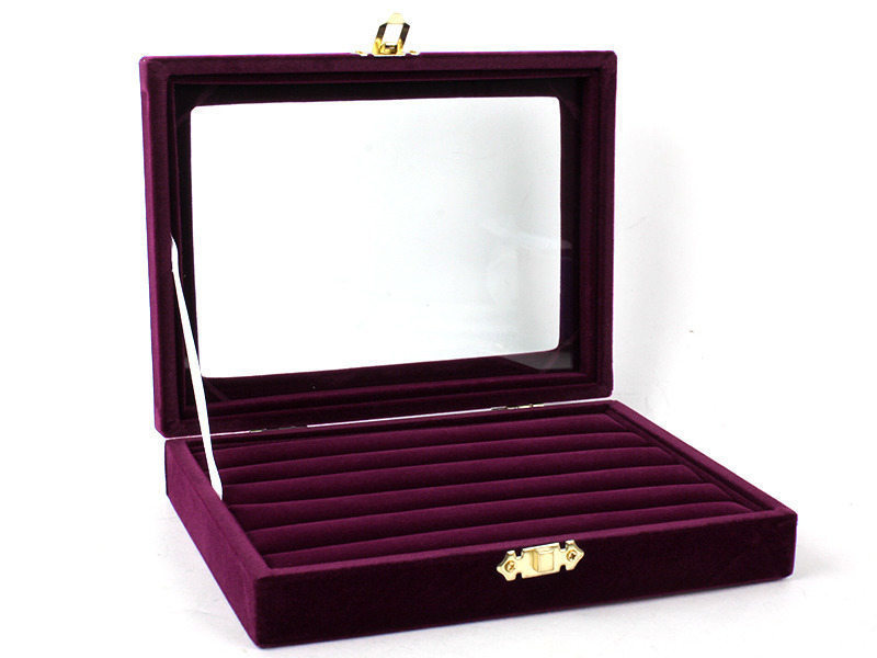 LDL1034# 高級感満載 起毛布製 アクセサリー リング 収納ケース 指輪 ピアス など/6列/紫 AZA-28822
